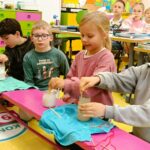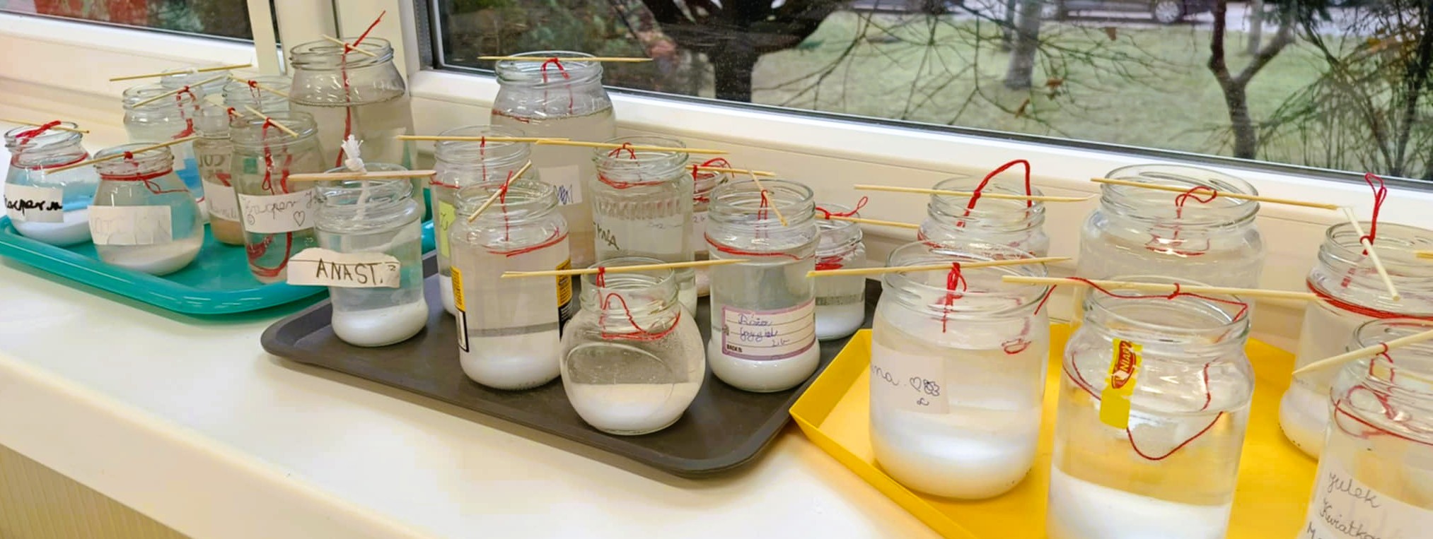 Przez ostatnie dni rozmawialiśmy o skarbach, jakie kryje nasza planeta Ziemia. Jednym z tych bogactw jest sól. Rozpoczęliśmy więc eksperyment polegający na hodowli kryształów soli. W słoiczkach przygotowaliśmy roztwór soli, następnie zanurzyliśmy w nim nitkę przywiązaną do patyczka. Przez najbliższe kilka tygodni będziemy obserwować proces krystalizacji oraz śledzić zmiany, jakie zachodzą w naszych „hodowlach”. Dzięki temu poznamy proces powstawania kryształów i dowiemy się, dlaczego sól wytrąca się z roztworu. Mamy już pewne przypuszczenia…