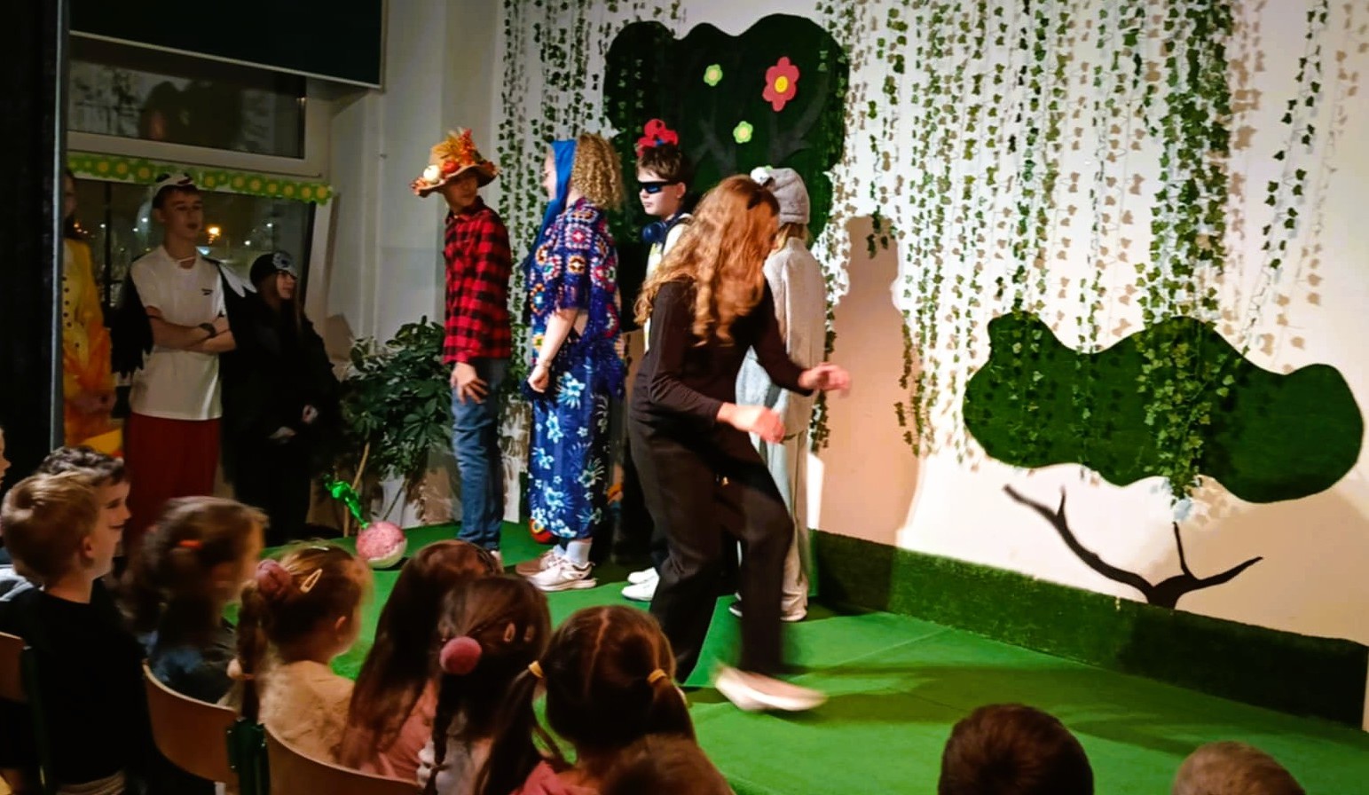 Na najmłodszych czekało mnóstwo atrakcji przygotowanych przez wychowawców oraz uczniów z klas starszych. Przedszkolaki zwiedzały szkołę, oglądając między innymi pracownie edukacji wczesnoszkolnej, salę komputerową, świetlicę, gdzie odbywał się kreatywny warsztacik plastyczny, oraz bibliotekę pełną ciekawych książek i zakamarków. Goście obejrzeli również barwne przedstawienie „Rzepka” Juliana Tuwima w wykonaniu naszych uczniów, a także wokalne popisy zespołu wokalnego TUZINKI. CZARNE STOPY jak zawsze zachwyciły swoją energią, sprawnością i poczuciem rytmu, a występ MISTRZA POLSKI w kategorii breaking 10- 11 lat ( Mistrzostwa Polski breaking 2025- Warsaw Moves) Arka Zawadzkiego wywołał burzę oklasków.