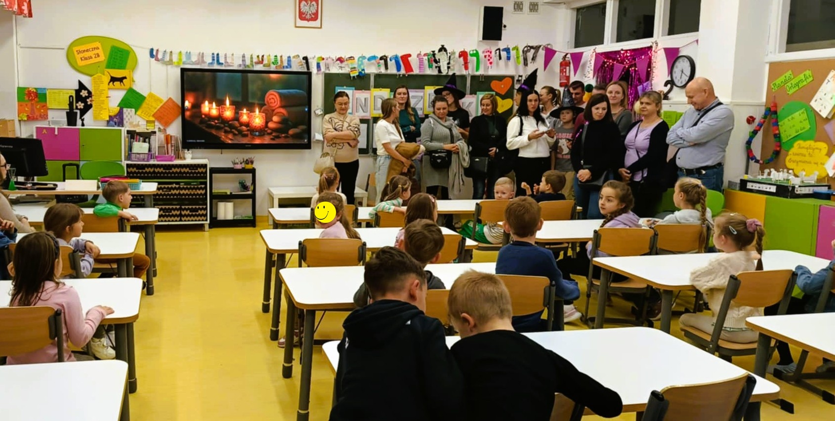 Na sali gimnastycznej odbywały się zabawy zręcznościowe, które dostarczyły mnóstwo radości i ruchu. Nie zabrakło andrzejkowych wróżb, które wprowadziły wszystkich w magiczny nastrój. Rodzice mieli okazję porozmawiać z dyrekcją i nauczycielami, uzyskać informacje o szkole oraz poznać nasze inicjatywy. Spotkanie zakończyło się minidyskoteką.
