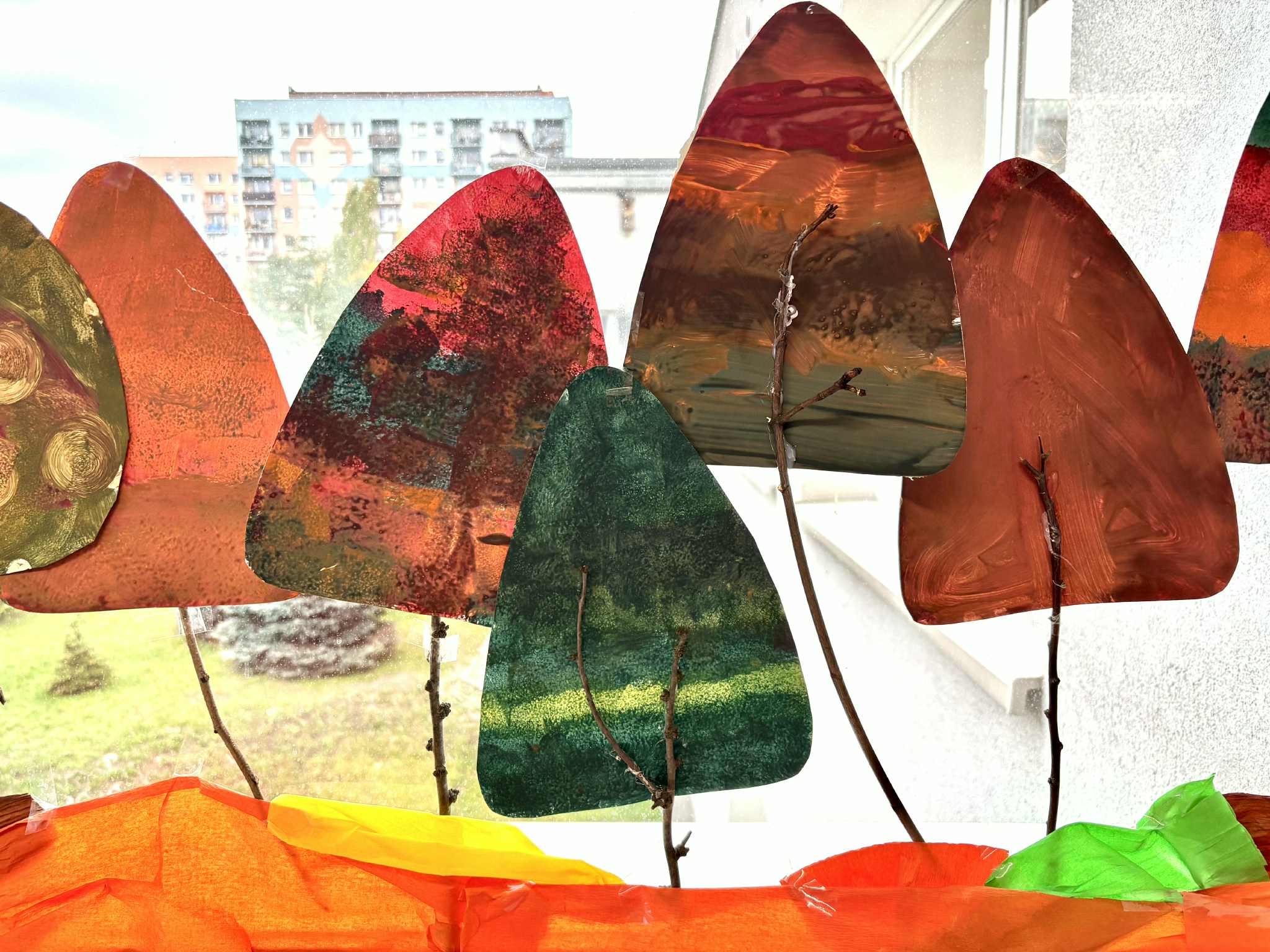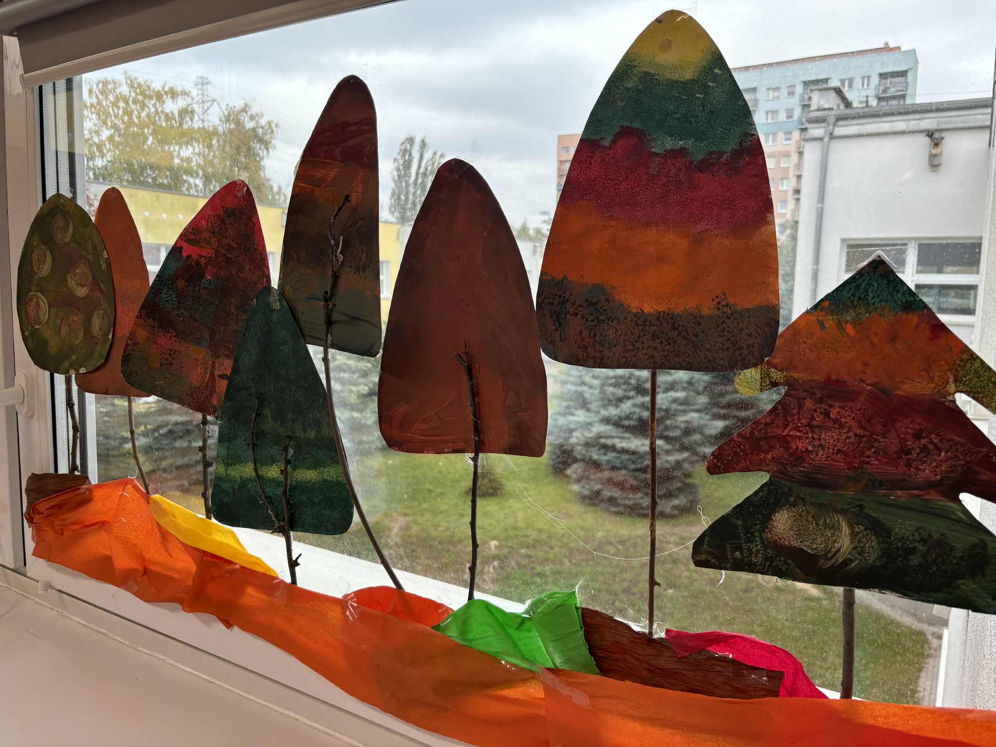 Zapraszamy do galerii ART-Kropki pt. „Świetlicowy jesienny las”. Do stworzenia naszych prac były nam potrzebne farby, gąbeczki, gałązki,papier i nasza wyobraźnia.
