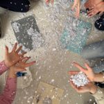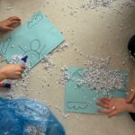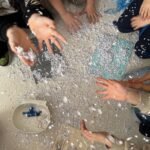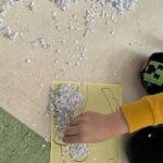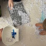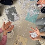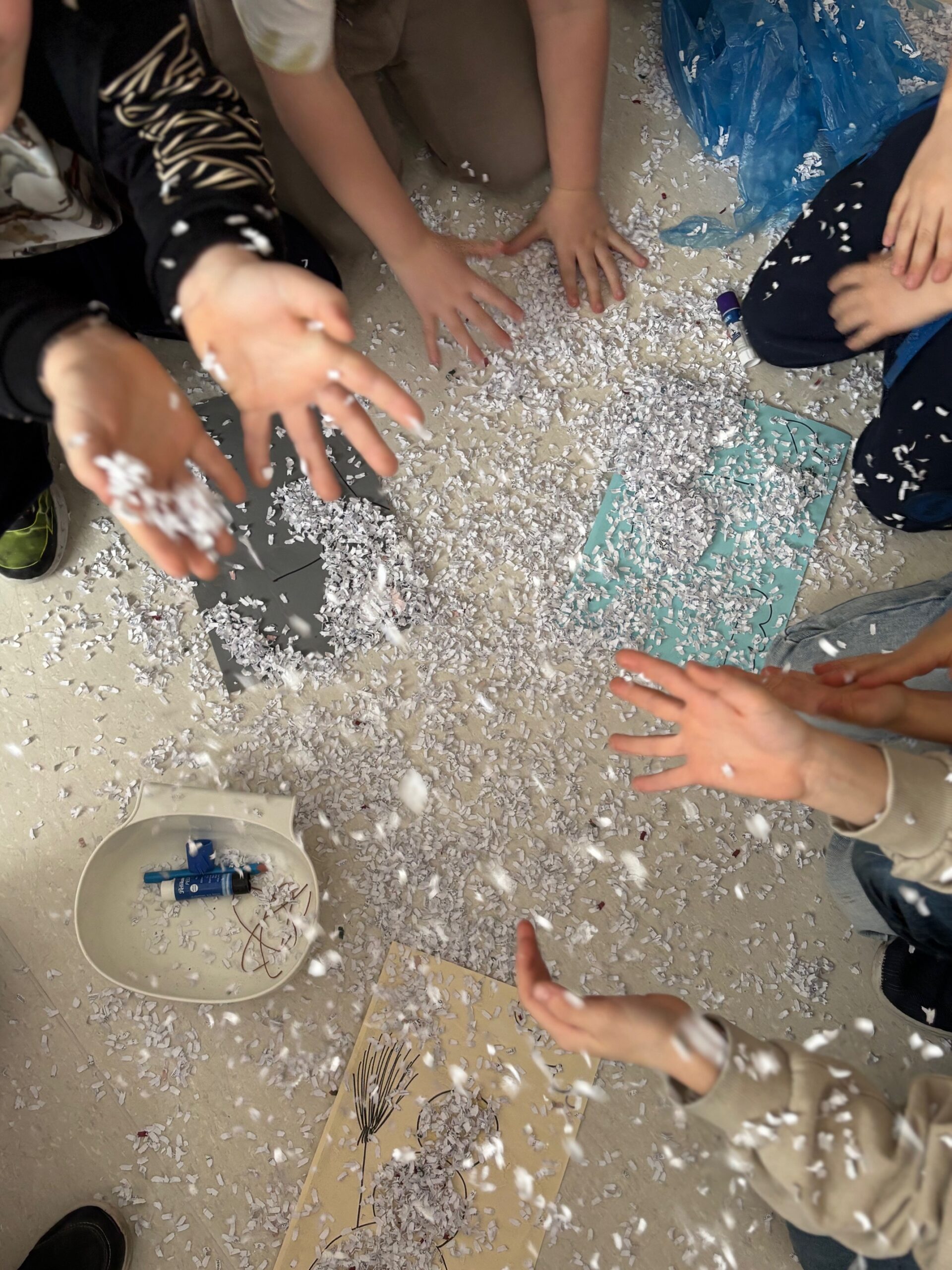 Zabawa ze sztucznym śniegiem w świetlicy szkolnej była nie tylko twórcza,  sprawiła także uczniom niesamowitą przyjemność sensoryczną.