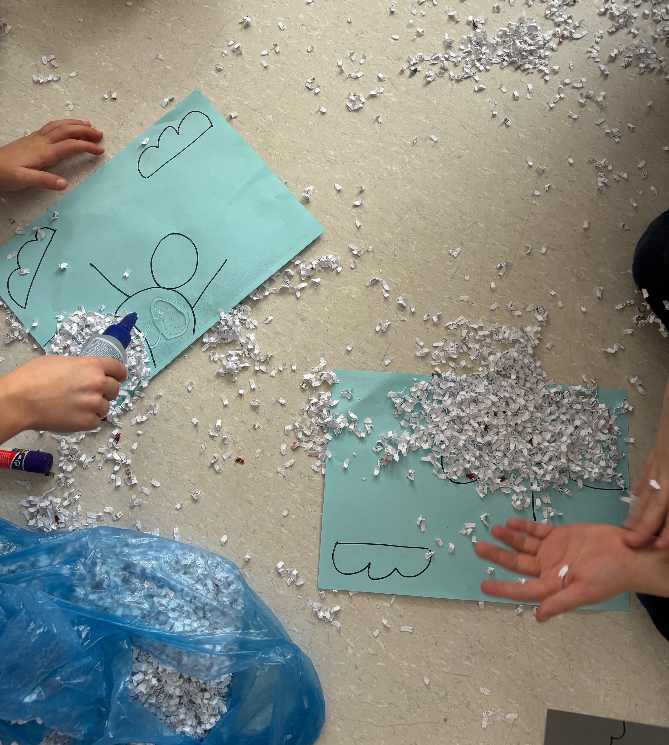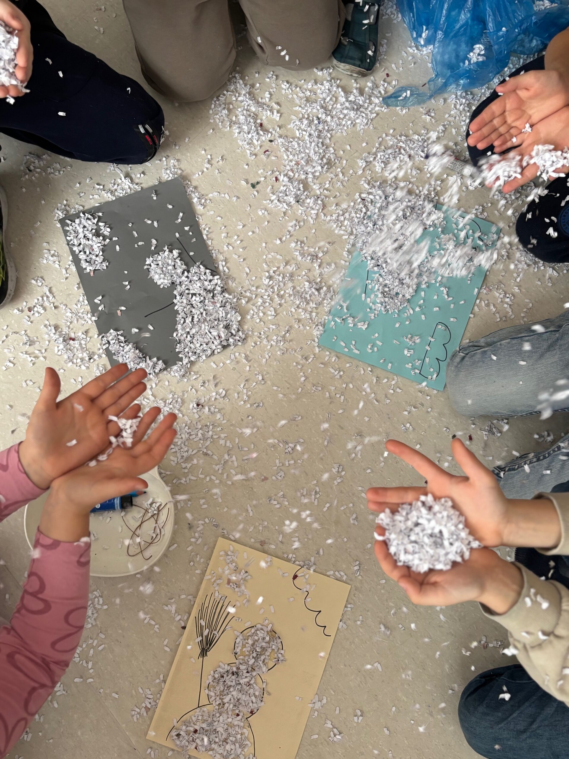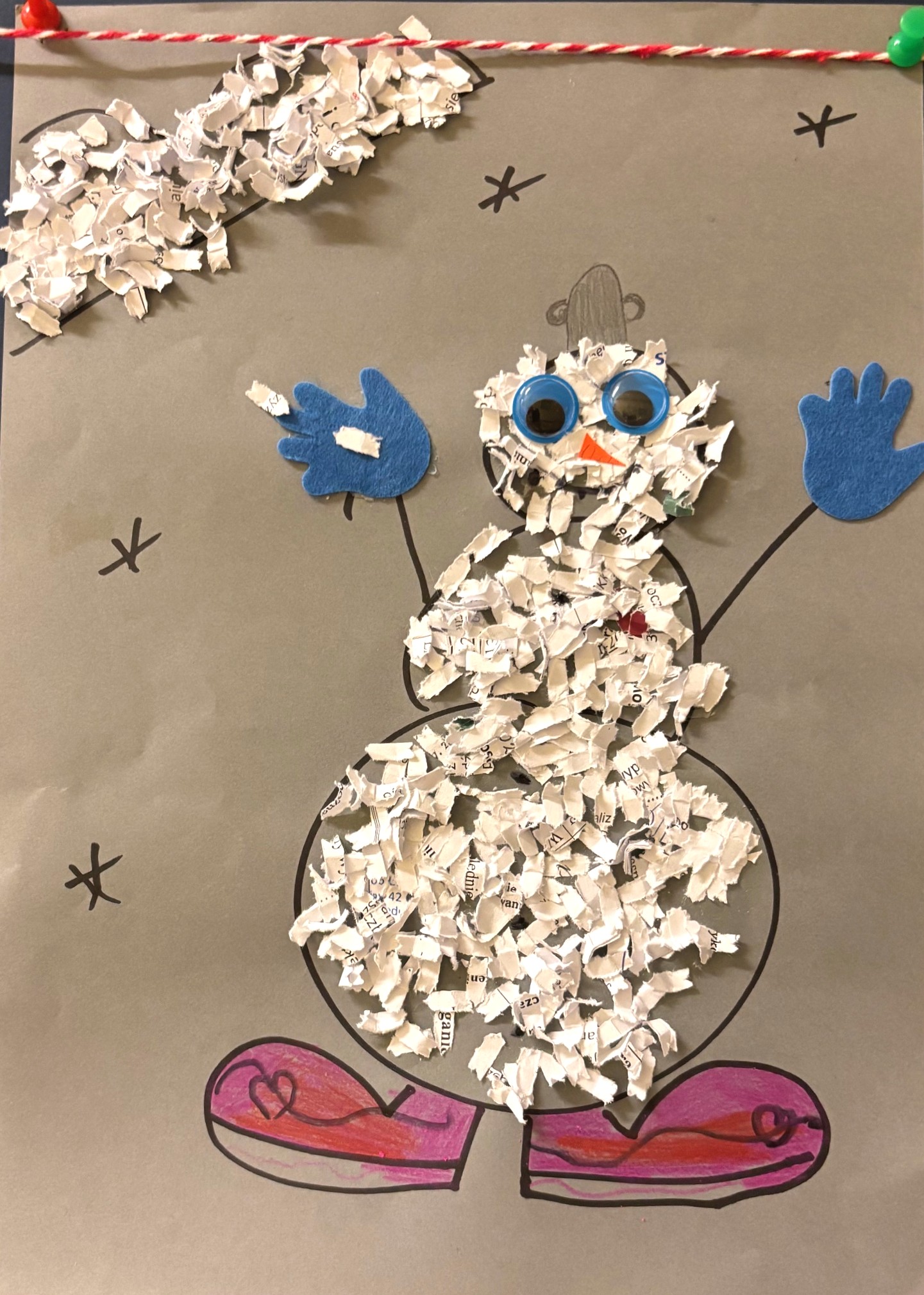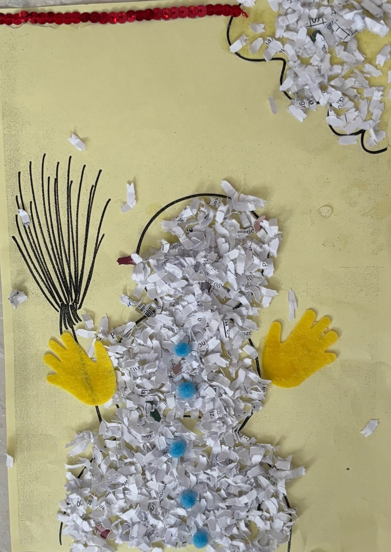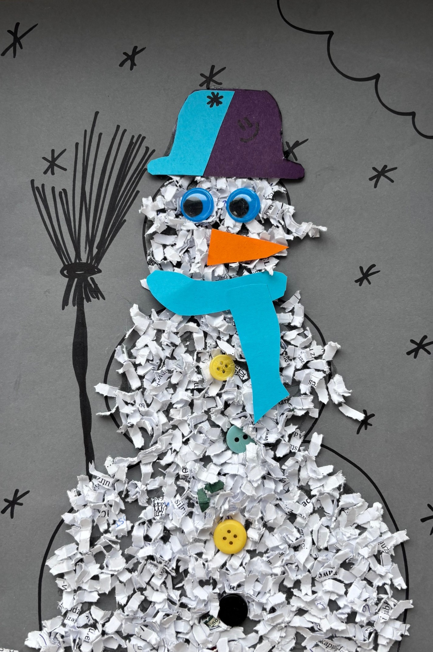 Uczniowie klas pierwszych brali udział w zimowych zajęciach „ART-Kropki”, podczas których powstały prawdziwie kreatywne bałwany z papieru z niszczarki. Nasz czas podczas tworzenia prac był urozmaicony zabawą ze sztucznym papierowym  puchem, który samoistnie rozprzestrzeniał się po całej naszej pracowni:-). Zadanie było dla Świetliczków dość wymagające, szczególnie dokładne wyklejenie bałwanków, ich udekorowanie i wykończenie.
