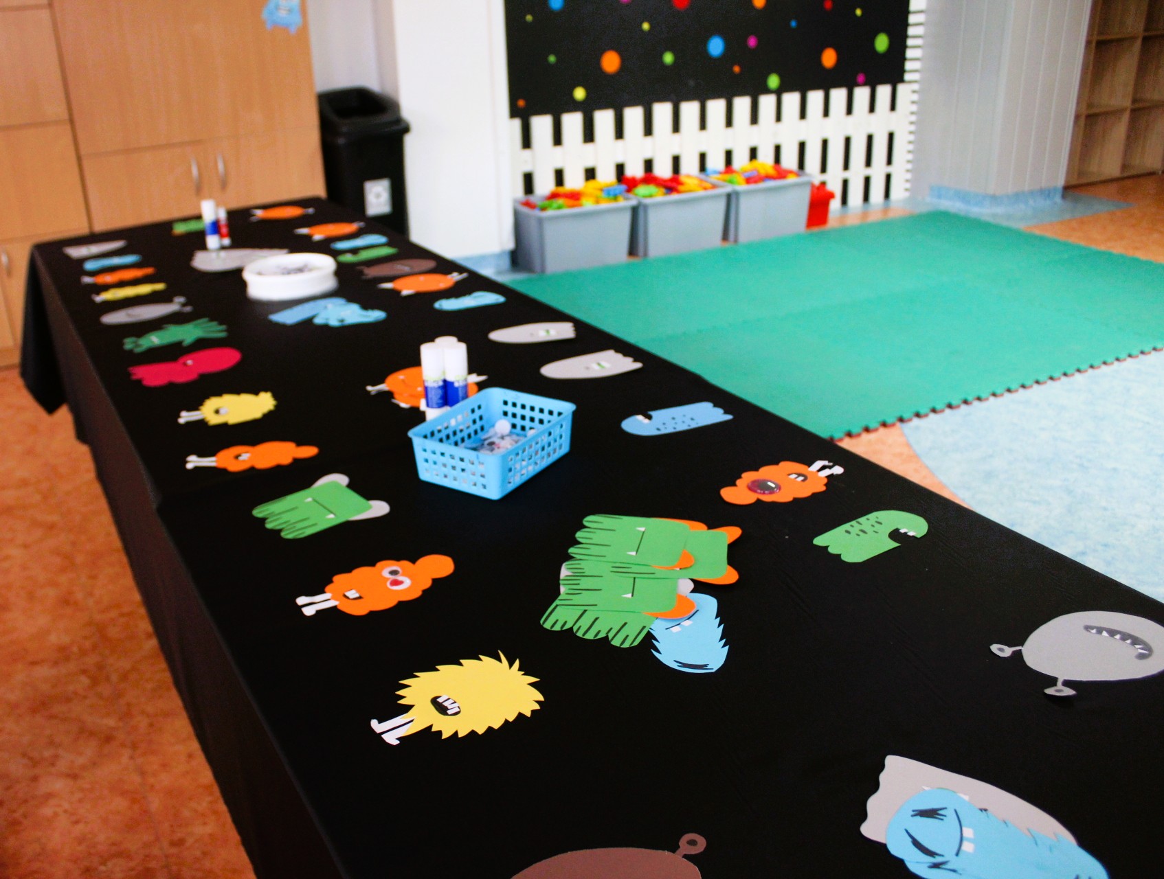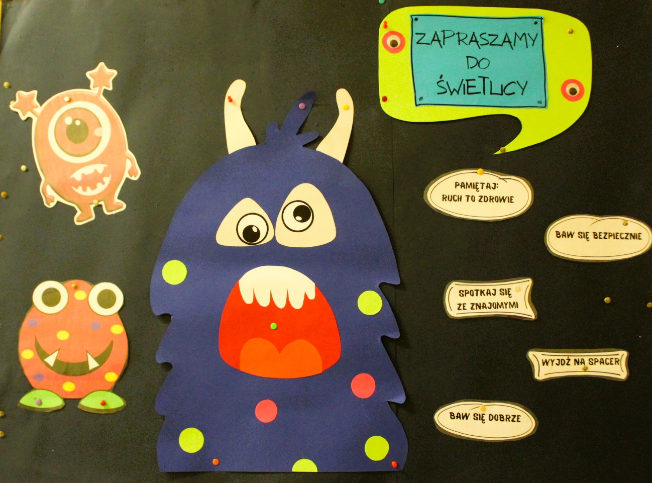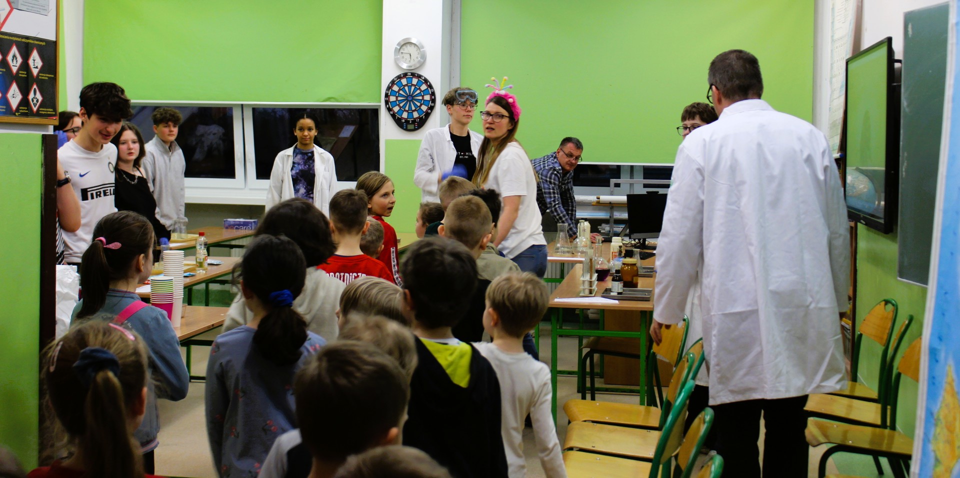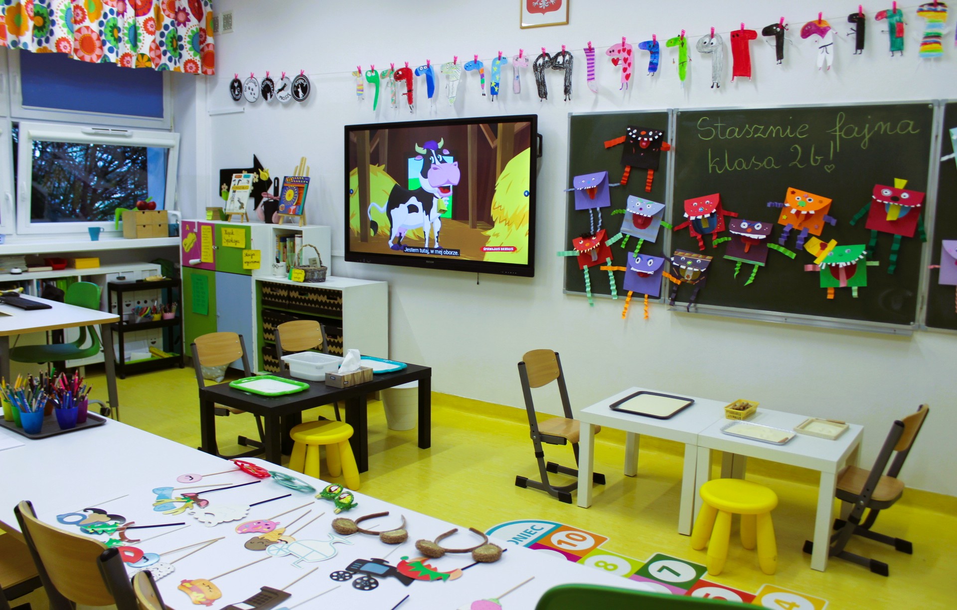 W salach klas 1–3 przygotowano m.in. stanowiska z cieczą nienewtonowską, pisaniem po piasku, balonikami oraz rysowaniem na ekranie multimedialnym. Nie zabrakło możliwości uwiecznienia radosnych uśmiechów na barwnym tle z sympatycznymi potworkami.