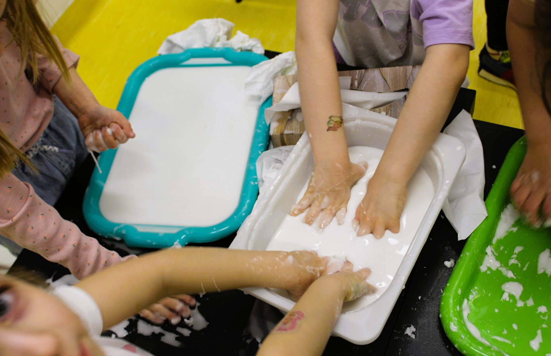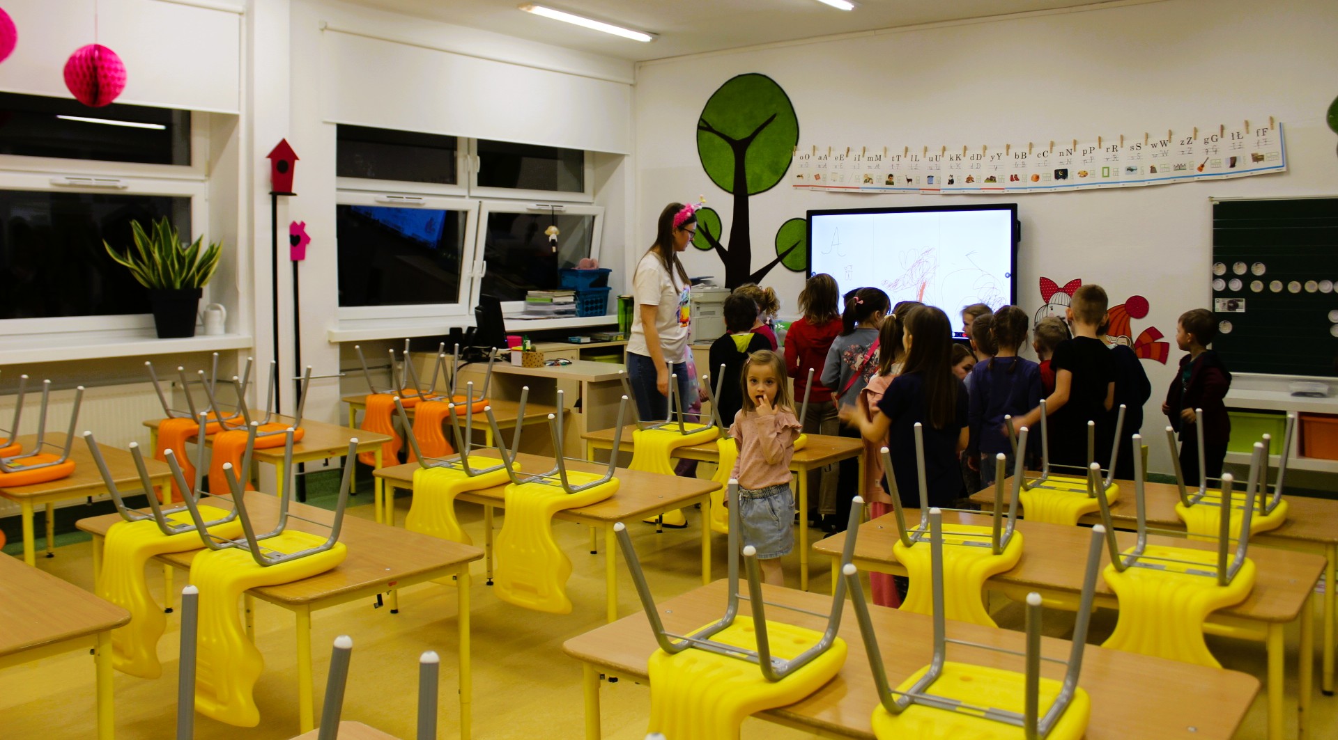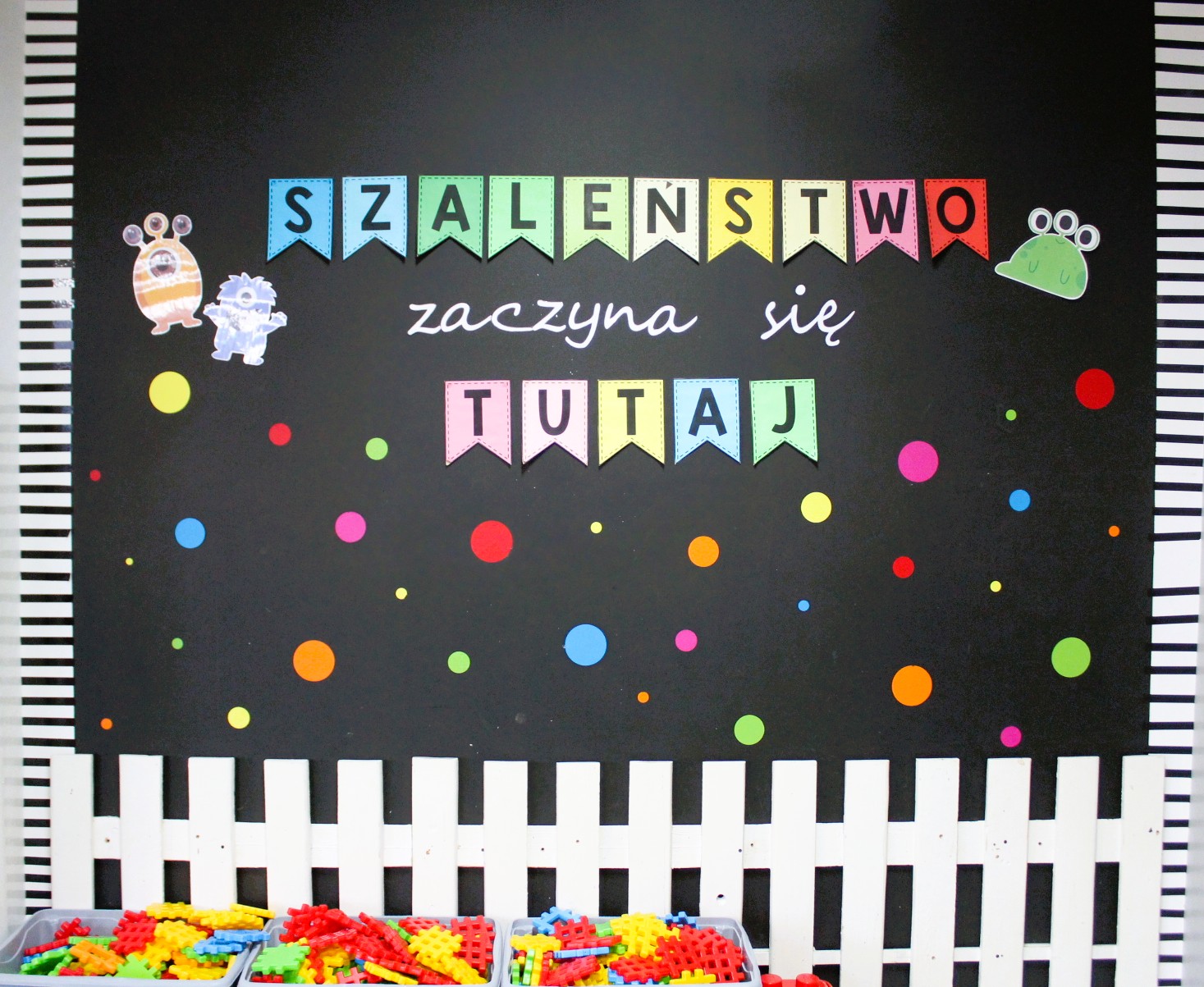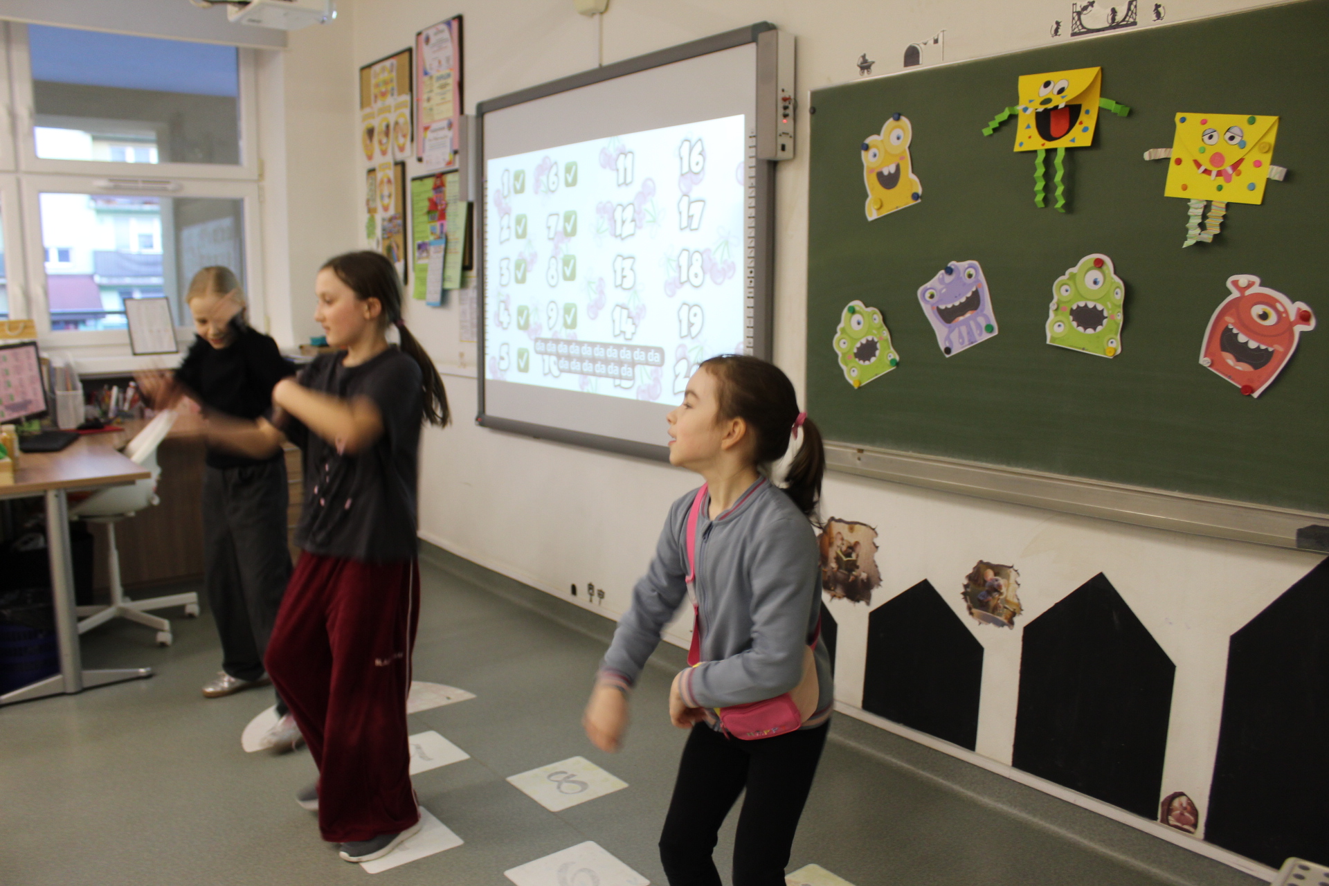 W salach klas 1–3 przygotowano m.in. stanowiska z cieczą nienewtonowską, pisaniem po piasku, balonikami oraz rysowaniem na ekranie multimedialnym. Nie zabrakło możliwości uwiecznienia radosnych uśmiechów na barwnym tle z sympatycznymi potworkami.