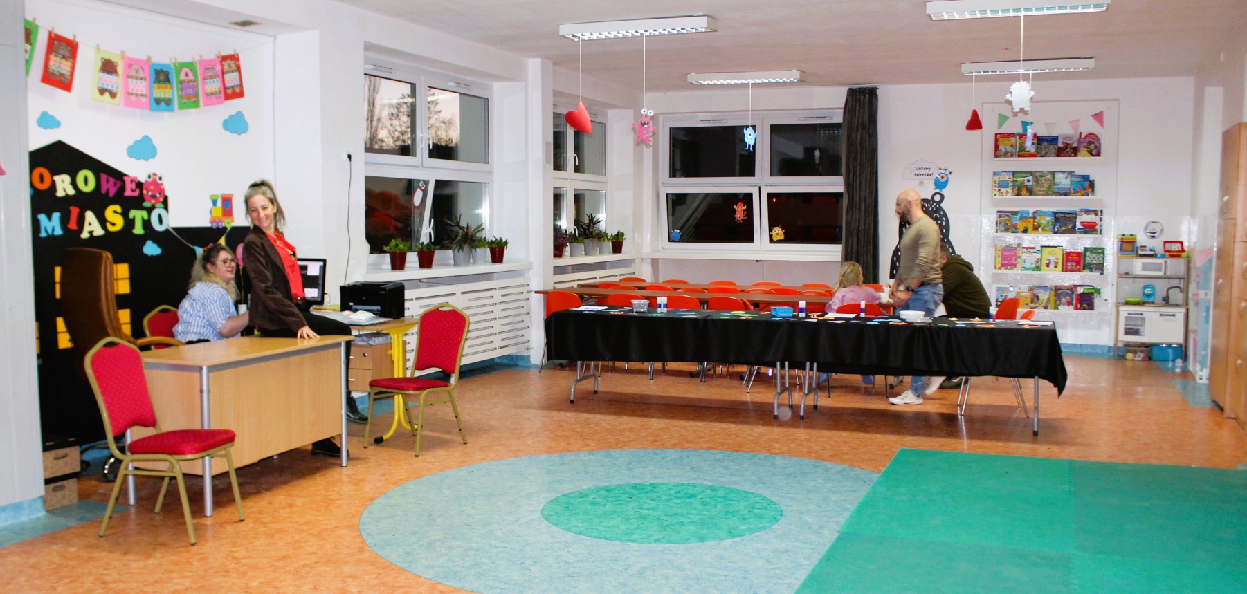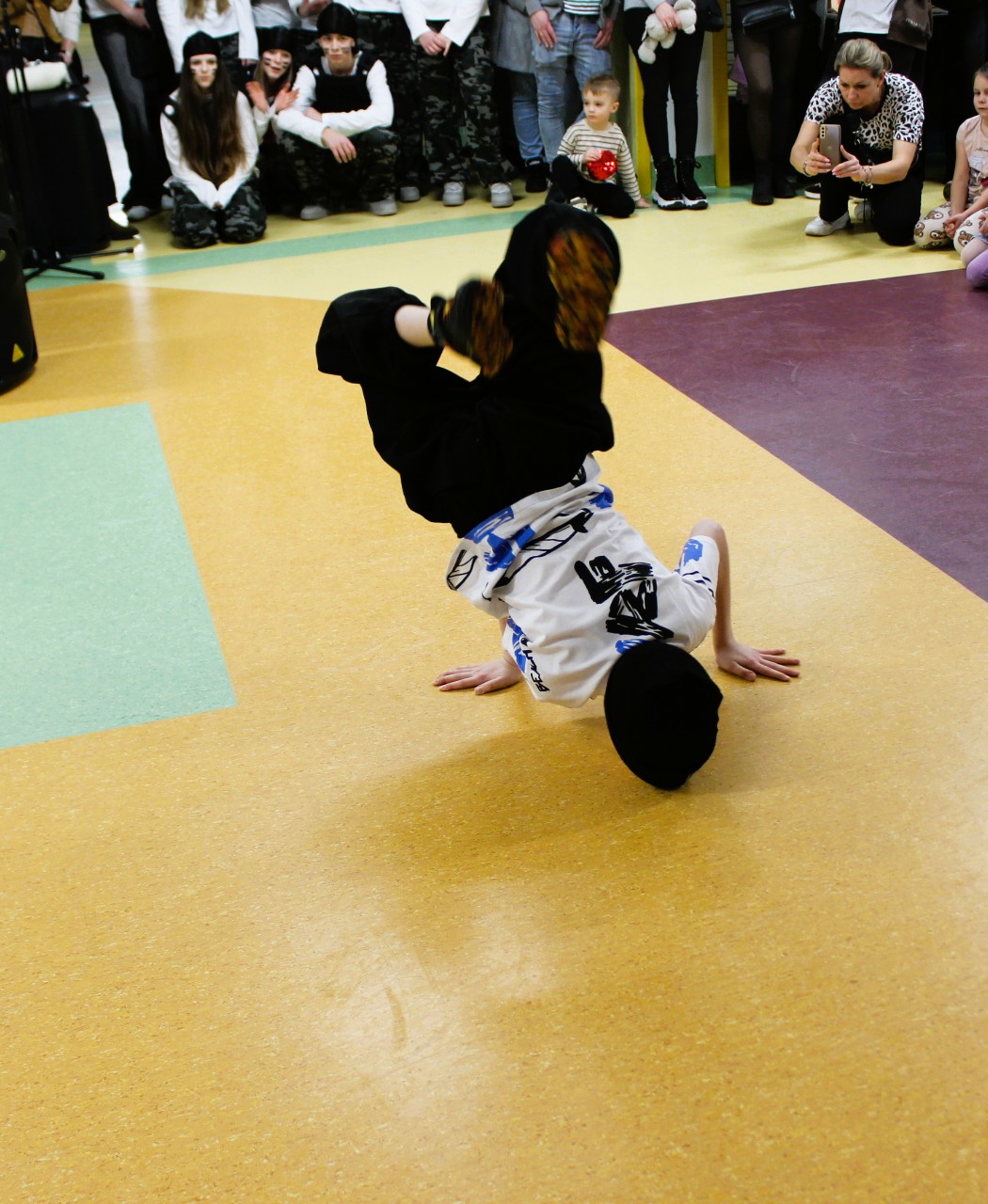 Na najmłodszych czekało wiele atrakcji, a były to ekspresyjne popisy taneczne CZARNYCH STÓP, wokalne występy TUZINEK, wybuchowy warsztat chemiczny, aktywizujące zabawy ruchowe w sali gimnastycznej oraz pokazy sportowe. Dużym zainteresowaniem cieszyła się sensoryczna strefa ciszy, a także warsztat plastyczny w świetlicy oraz wizyta w bibliotece. W pracowni komputerowej można było obserwować pracę drukarek 3D oraz otrzymać na pamiątkę wydrukowanego stworka:).