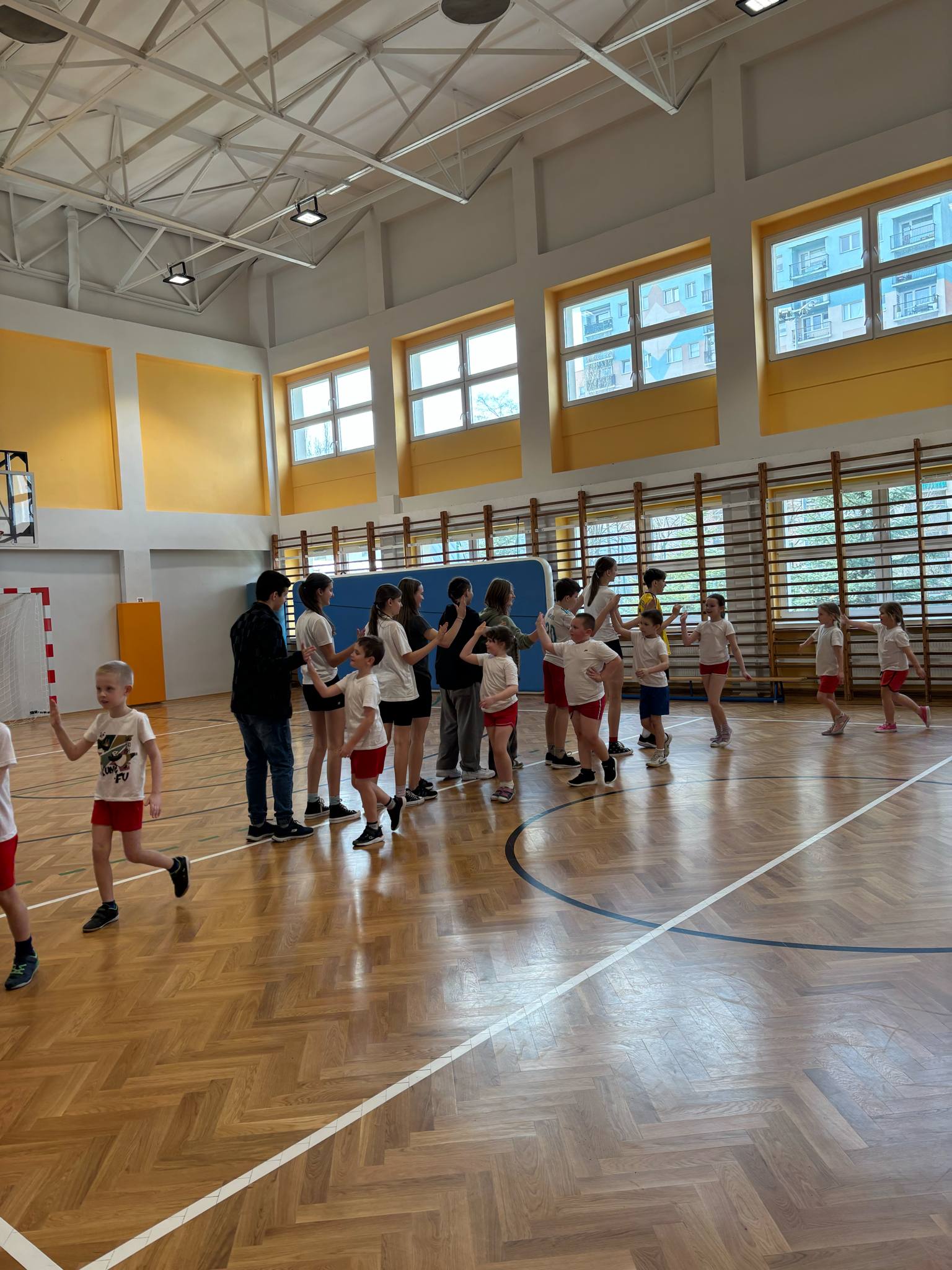 25 marca mieliśmy wyjątkową lekcję wf-u, gdyż gościliśmy na niej kolegów i koleżanki z 8 klasy. Dzięki ich uprzejmości mogliśmy wspólnie zagrać w zbijaka, nauczyliśmy się nowej zabawy w „sardynki”, a także ćwiczyliśmy szybkość w zabawie „w berka”. Dziękujemy za wspaniałą integrację! 🙂