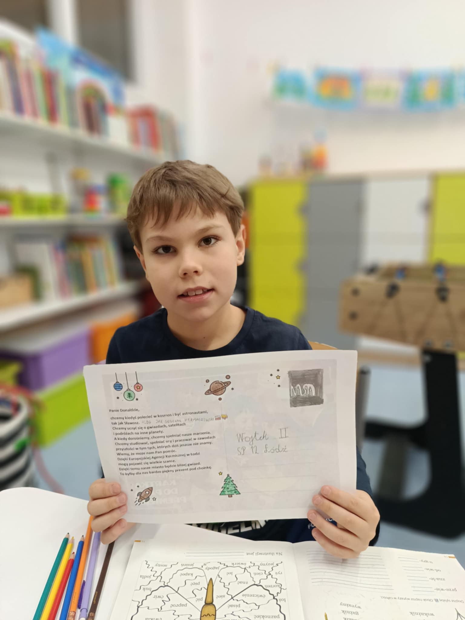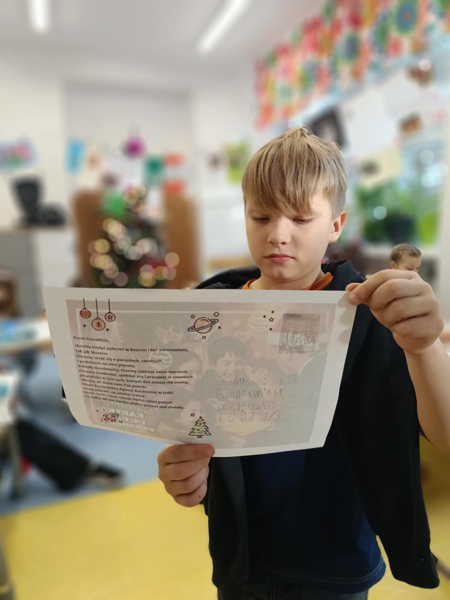 Dziś wzięliśmy udział w akcji pisania świątecznych kartek do Premiera z życzeniami oraz prośbą dotyczącą powstania siedziby Europejskiej Agencji Kosmicznej w Łodzi. Jej organizatorem jest Wydział Edukacji w Łodzi. |