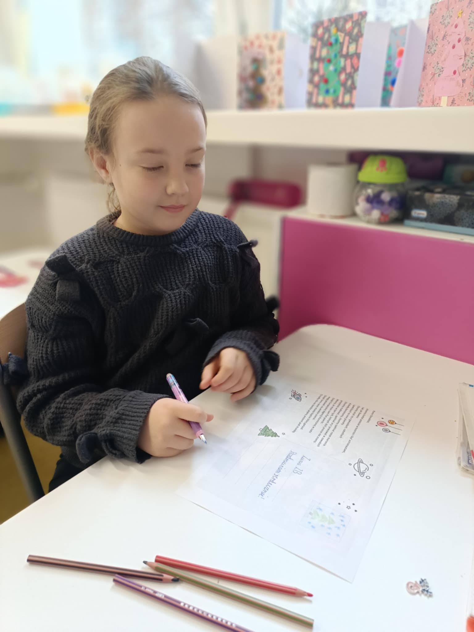 Po prezentacji różnych form alfabetu przyszedł czas na wyeksponowanie literkowych bombek autorstwa Poli.