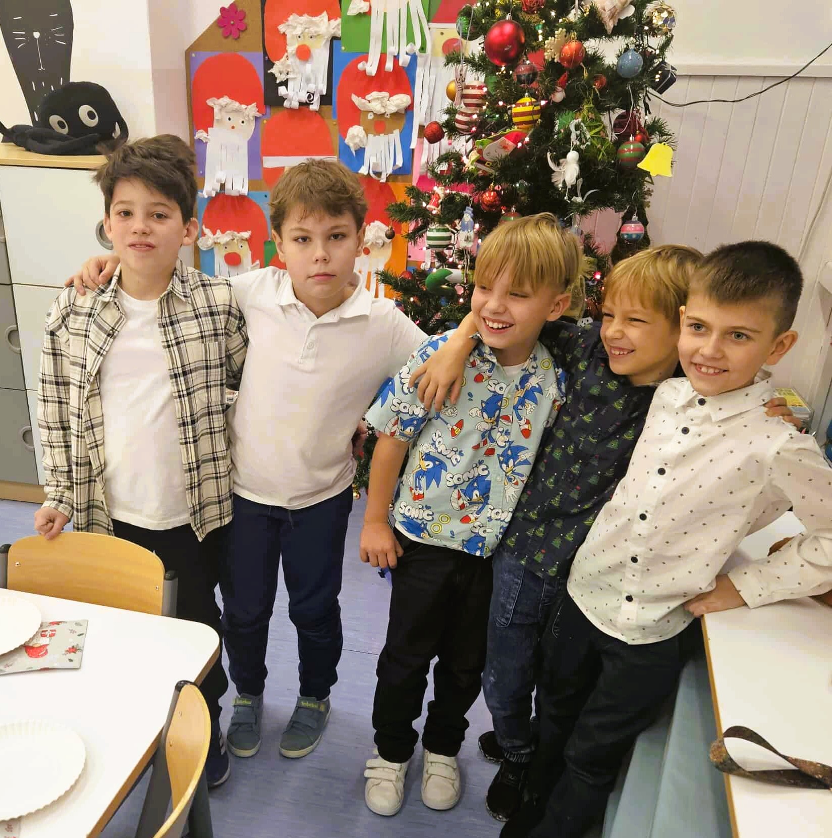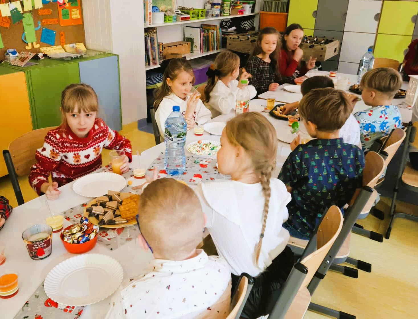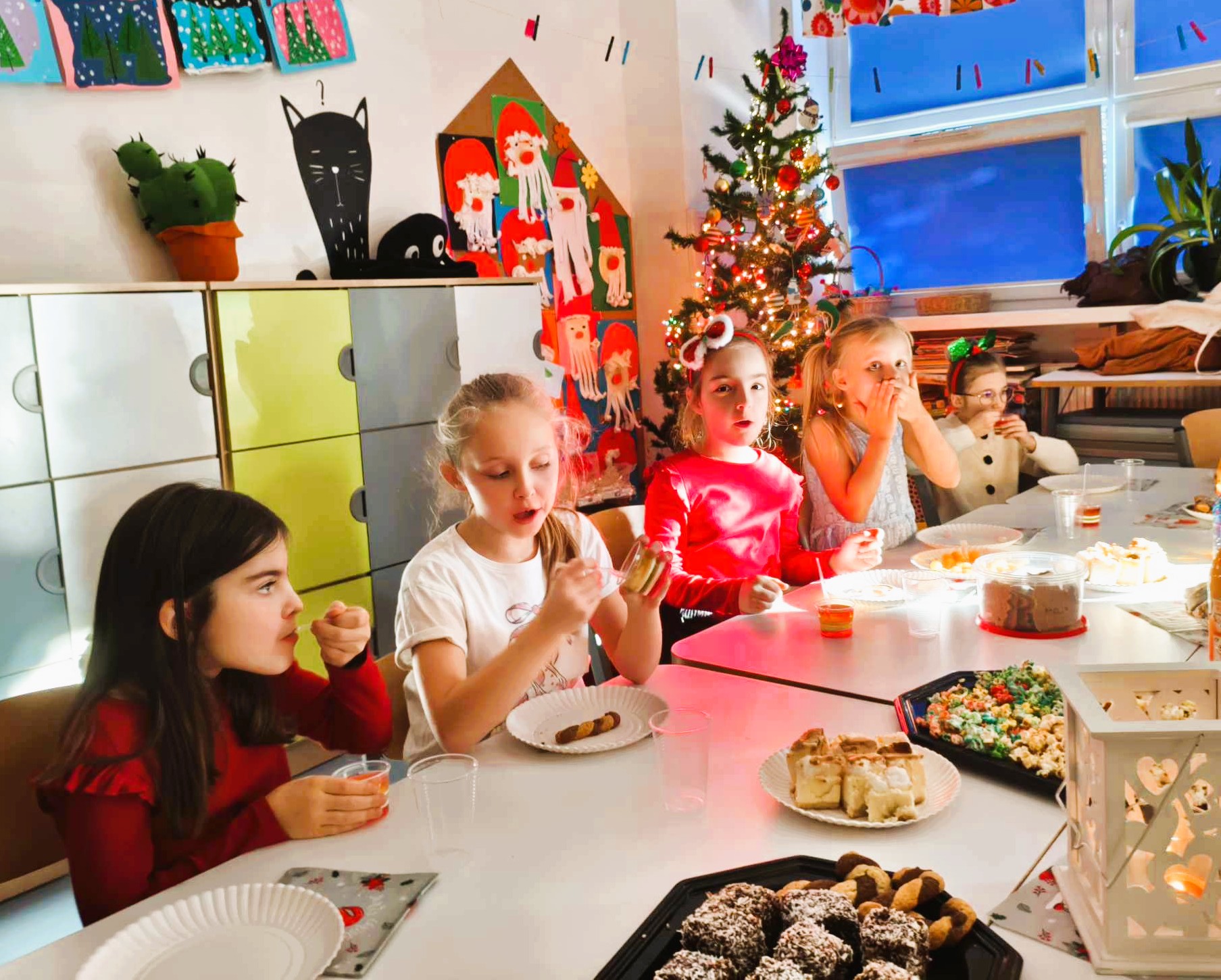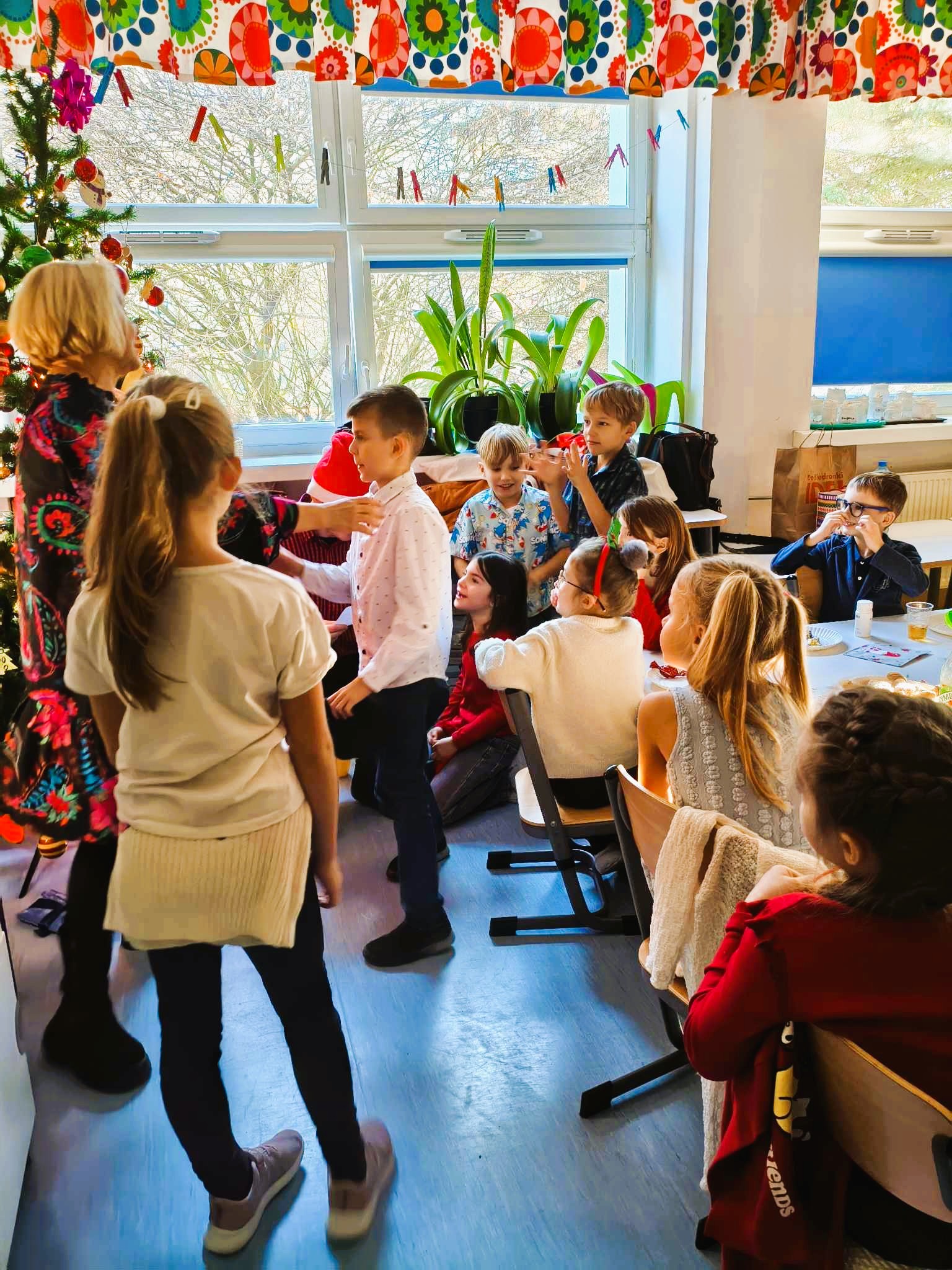 19 grudnia wspólnie obchodziliśmy naszą drugą klasową Wigilię. Uroczystość rozpoczęliśmy od podzielenia się opłatkiem. Życzyliśmy sobie dużo szczęścia, radości i wymarzonych prezentów. To była najbardziej wzruszająca i ciepła chwila. Nie obyło się bez zaśpiewania znanych kolęd, a w tym piosenki, którą prezentowaliśmy na naszym szkolnym Festiwalu Piosenki Świątecznej. Wspólnie biesiadowaliśmy przy stole pełnym przysmaków, uczciliśmy również 8 urodziny Igora. Miłą niespodziankę sprawił nam Mikołaj wręczając każdemu zasłużony upominek. Było miło, nastrojowo i pysznie. Dziękujemy Rodzicom za przygotowanie uroczystości!
