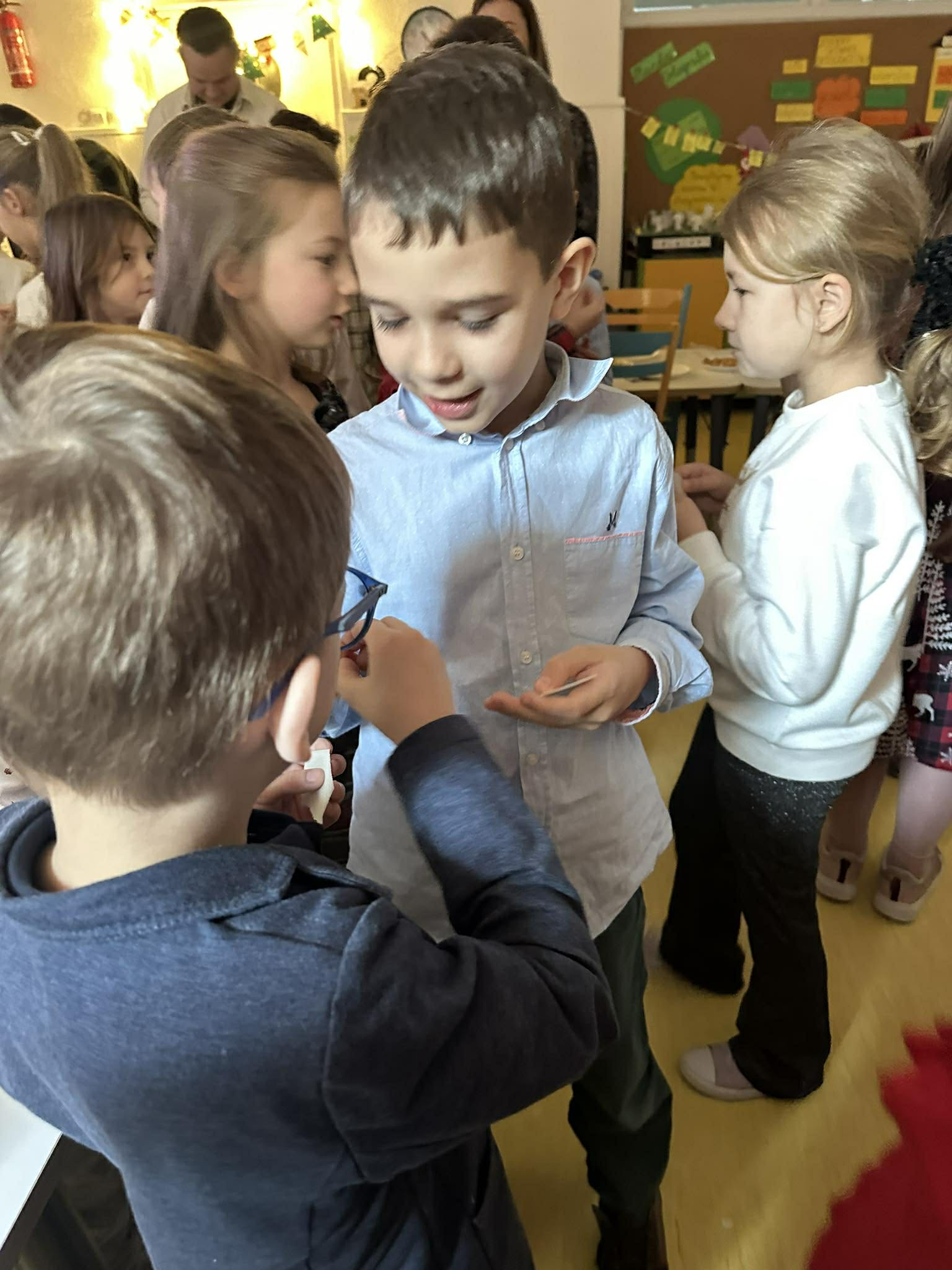 11 grudnia w naszej szkole odbył się po raz pierwszy Festiwal Piosenki Świątecznej, który wprowadził wszystkich w magiczny nastrój nadchodzących świąt. Gościliśmy sześciolatki z widzewskich przedszkoli, które tak jak nasi uczniowie z klasy 2a, 2b i 3a, zaprezentowali rozmaite utwory o tematyce bożonarodzeniowej. Mali artyści śpiewali z ogromnym zaangażowaniem, a ich barwne stroje, ruch sceniczny i wokalne popisy wywołały uśmiechy i aplauz wśród publiczności. To był dzień pełen radości i muzyki, która połączyła przedszkole ze szkołą!