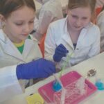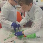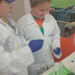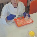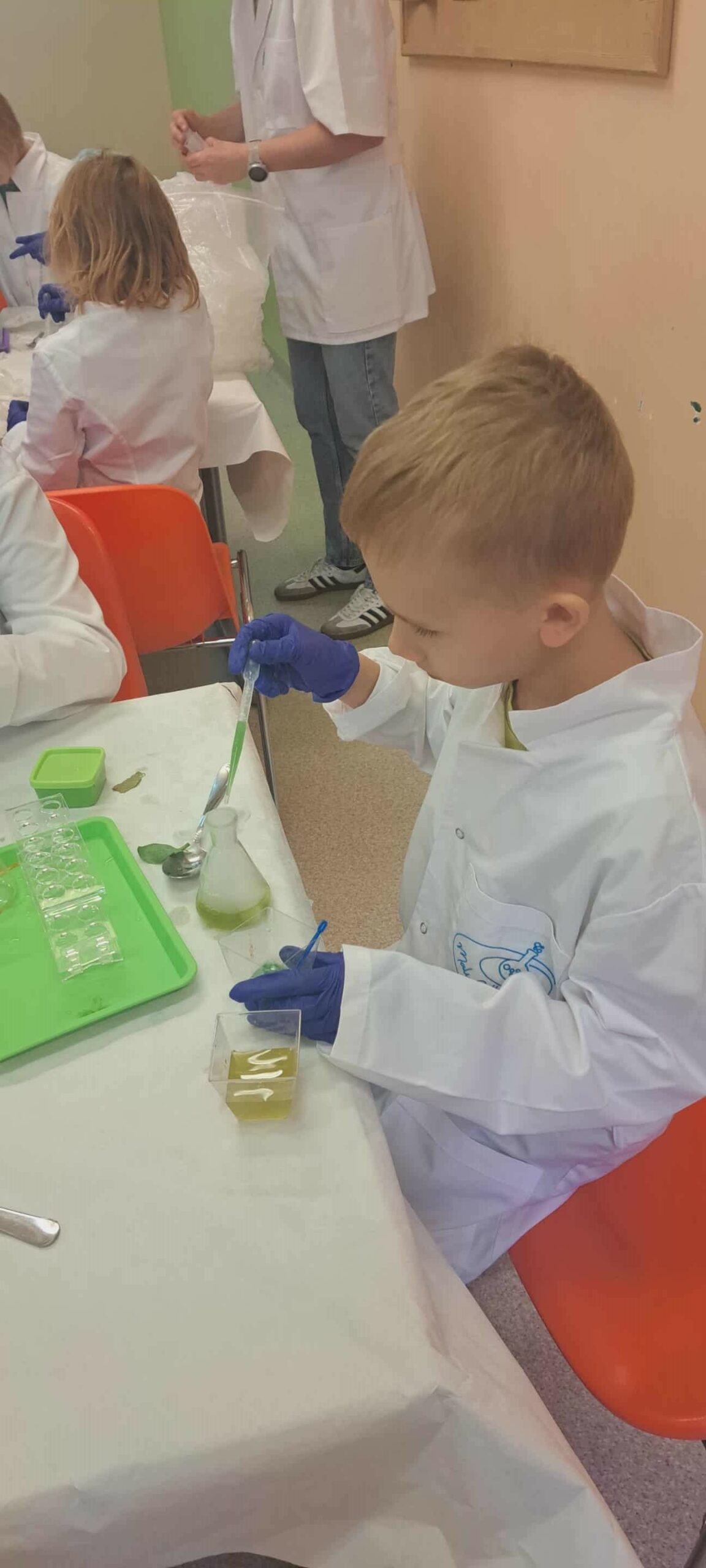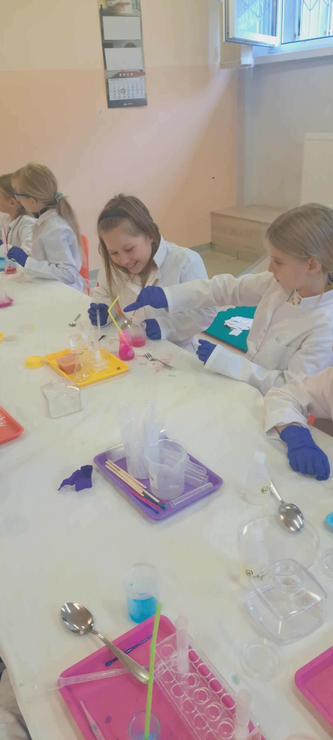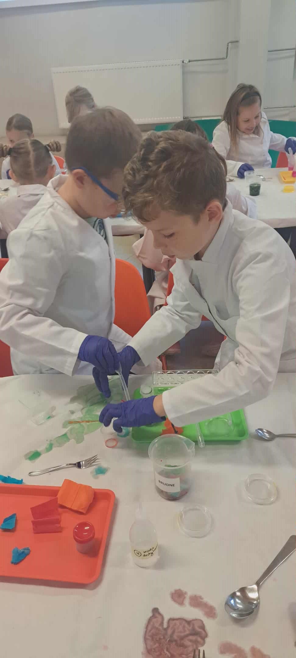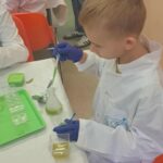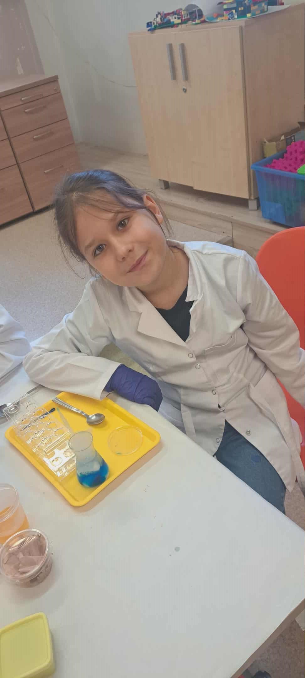 Na zakończenie miesiąca uczestniczyliśmy w warsztatach chemicznych, które były prawdziwym hitem! Dowiedzieliśmy się, czym jest suchy lód, jakie ma właściwości, a potem… zaczęły dziać się cuda: woda „dymiła” jak w bajce, kolory zmieniały się jak za dotknięciem czarodziejskiej różdżki, nadmuchiwaliśmy balony z rękawiczek, które same się rozszerzały dzięki dwutlenkowi węgla! Było jak w laboratorium czarodzieja – magicznie, naukowo i bardzo ciekawie! To był niesamowicie aktywny październik! Uczyliśmy się przez działanie, twórczość i zabawę – tak właśnie lubimy zdobywać wiedzę. Przed nami kolejne jesienne przygody!