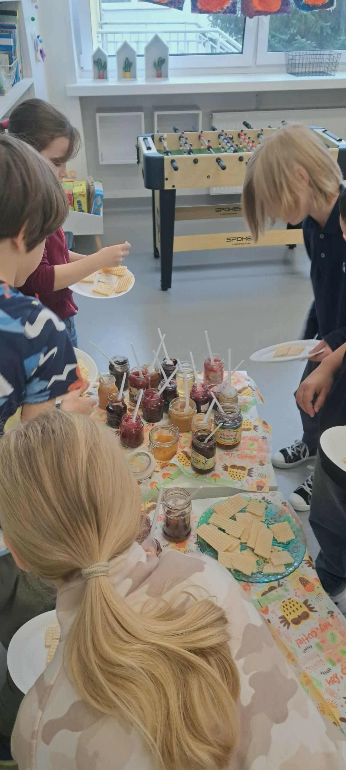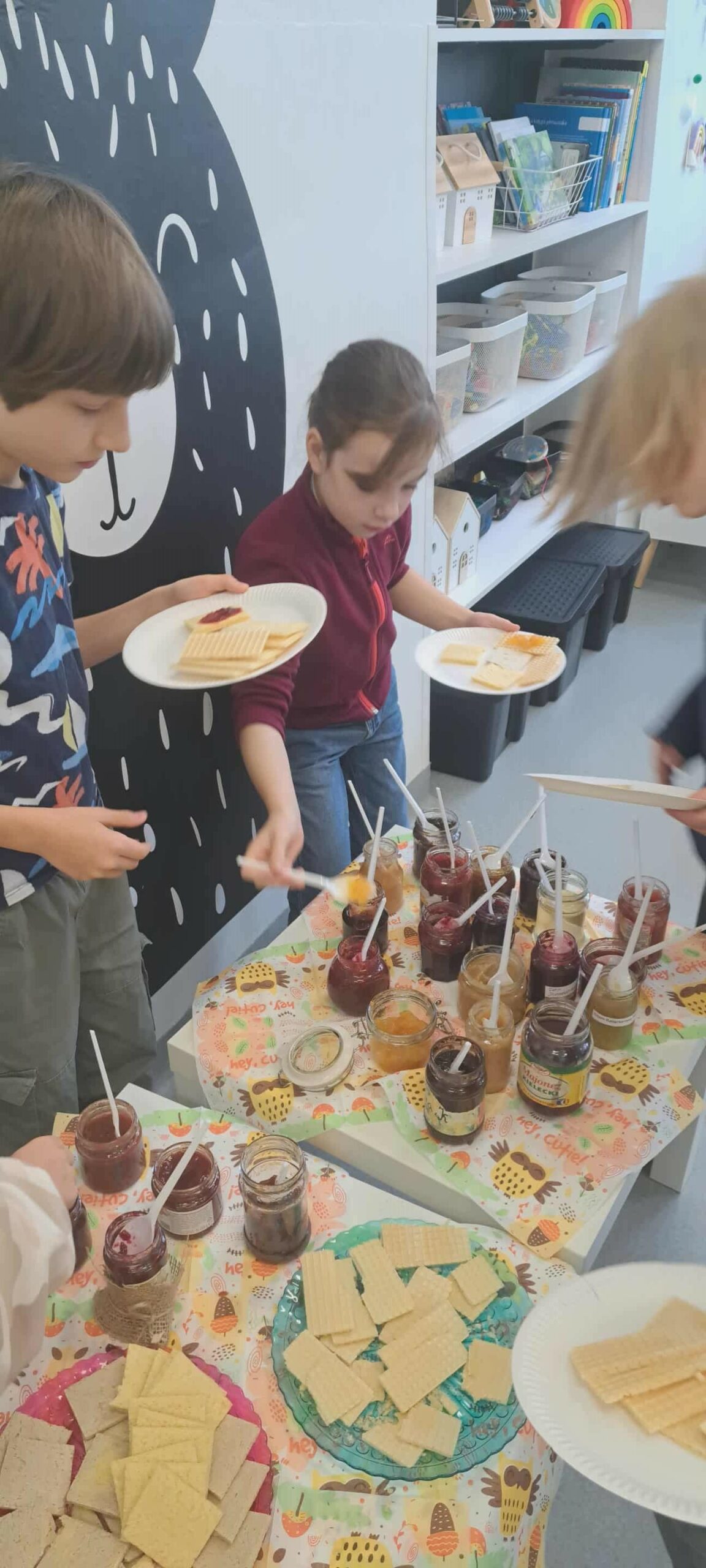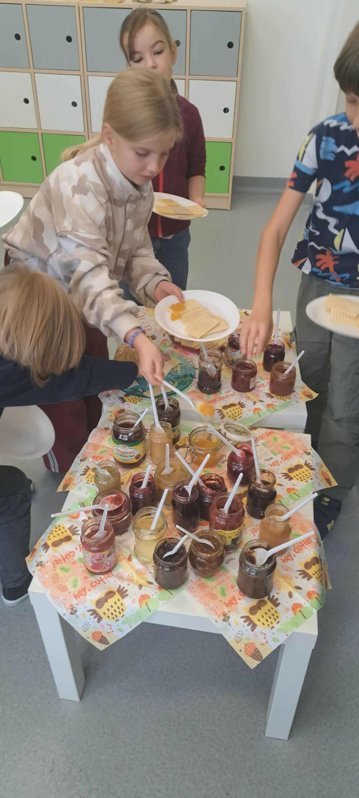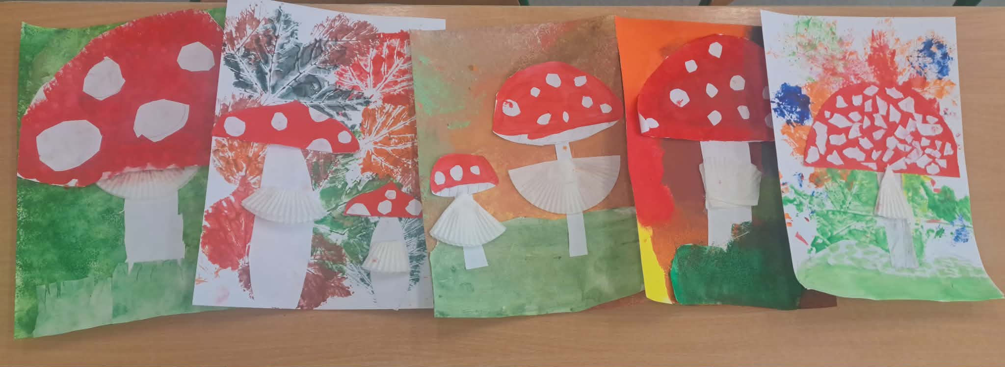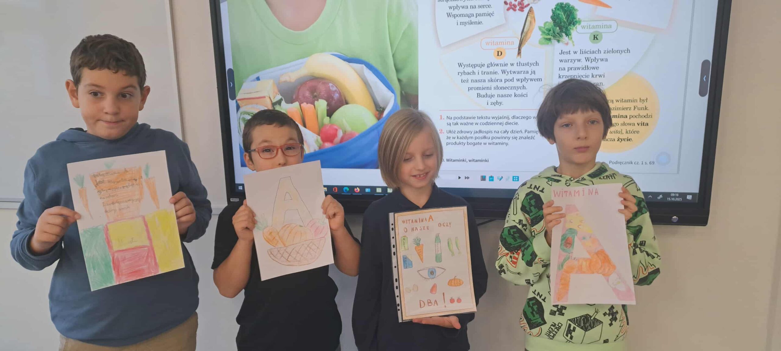 Na zajęciach przyrodniczych uczyliśmy się, z czego składa się las. Poznaliśmy warstwy lasu: ściółkę, runo, podszyt i koronę drzew. Wspólnie wykonaliśmy kolorowe prace plastyczne, które pokazały nam, kto mieszka na każdej z tych „pięter” leśnego świata. Nasza kreatywność nie zna granic! Jesienią tworzyliśmy dynie z ręczników papierowych malowanych farbami – każda była inna, z buzią, liściem albo śmieszną czapeczką oraz kolorowe grzyby – malowaliśmy je farbami, a kapelusze tworzyliśmy z papilotek po babeczkach! To było wyjątkowo twórcze i zabawne. Podczas rozmów o zdrowym żywieniu stworzyliśmy plakaty „Gdzie mieszkają witaminy?”, na którym pokazaliśmy, w jakich owocach i warzywach znajdziemy najwięcej zdrowia. Było barwnie, kolorowo i bardzo apetycznie! Dzięki zaangażowaniu rodziców i uczniów mieliśmy okazję spróbować różnych jesiennych przetworów – pachnących latem dżemów, domowych konfitur i kompotów. Każdy mógł skosztować i spróbować rozpoznać składniki. Pycha!