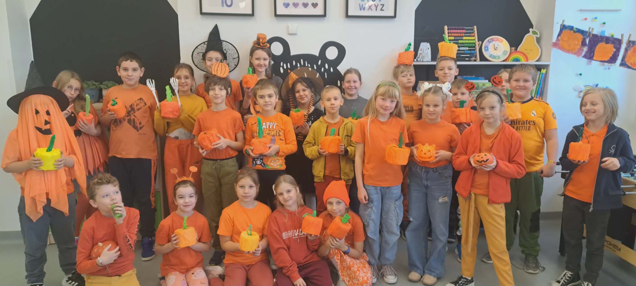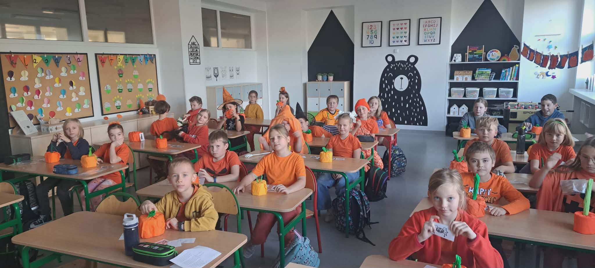 Kolejnym wyjątkowym wydarzeniem był Dzień Dyni. Tego dnia królował kolor pomarańczowy, poznaliśmy ciekawostki na temat dyni oraz uczestniczyliśmy w różnorodnych zabawach tematycznych. Wspólne aktywności dostarczyły wiele radości i sprawiły, że atmosfera w klasie była wyjątkowo wesoła. Udział w zajęciach wychowania fizycznego na wrotkach był doskonałą okazją do doskonalenia równowagi, koordynacji ruchowej oraz bezpiecznego poruszania się. Zajęcia dostarczyły wielu emocji i były świetną formą aktywnego spędzania czasu.