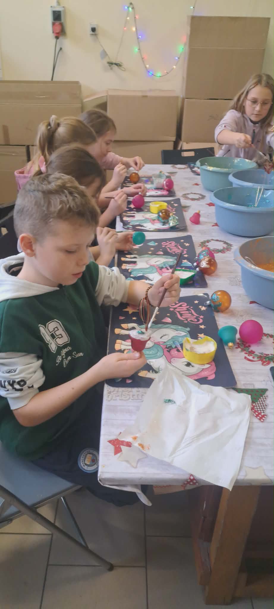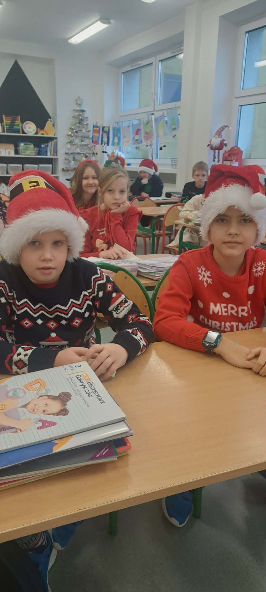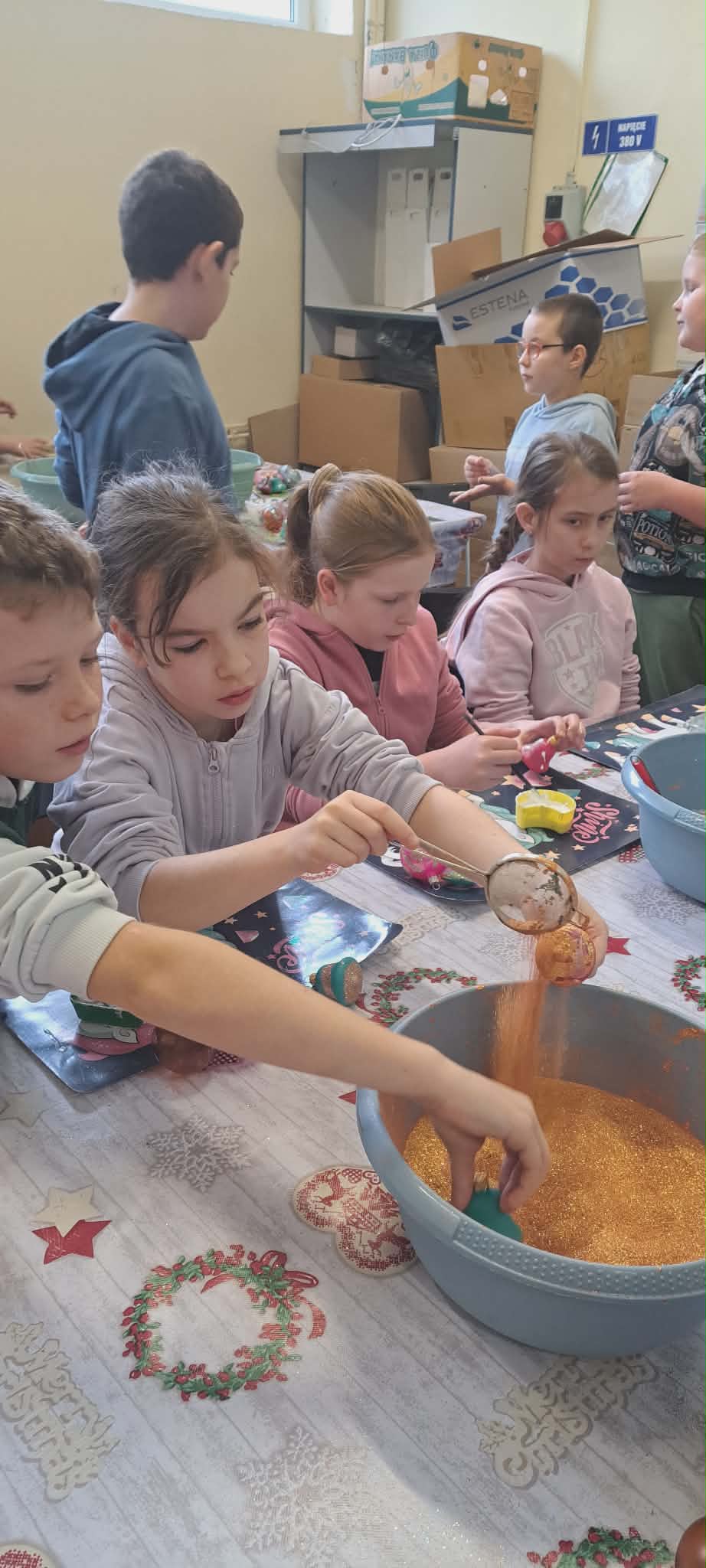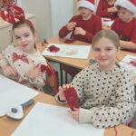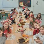 Na początku miesiąca odwiedziliśmy fabrykę bombek w Piotrkowie Trybunalskim, gdzie poznaliśmy etapy powstawania szklanych ozdób choinkowych. Z zainteresowaniem obserwowaliśmy proces tworzenia bombek oraz dowiedzieliśmy się, jak wiele pracy i precyzji wymaga ich wykonanie. Kolorowe ozdoby wprowadziły wszystkich w świąteczny nastrój. Korzystając z zimowej aury, która zaskoczyłam nas w pierwszym tygodniu grudnia chętnie uczestniczyliśmy w zabawach na śniegu. Były wspólne gry ruchowe, lepienie bałwanów oraz zabawy na świeżym powietrzu, które dostarczyły nam wiele radości i uśmiechu. Dużym przeżyciem była wizyta na warsztatach w Wiosce Skrzatów Mikołaja. Przenieśliśmy się do magicznego świata świąt, gdzie spotkaliśmy skrzaty i uczestniczyliśmy w przygotowanych atrakcjach. Warsztaty pozwoliły poczuć prawdziwą magię nadchodzących świąt. W świątecznym nastroju wybraliśmy się na spacer po pięknie udekorowanej ulicy Piotrkowskiej. Kolorowe iluminacje i dekoracje stworzyły wyjątkową atmosferę i zachwyciły wszystkich uczestników. W grudniu obchodziliśmy również Mikołajki. Był to dzień pełen radości, niespodzianek i drobnych upominków, który wywołał wiele uśmiechów na naszych twarzach. Gościnnie wzięliśmy udział w Festiwalu Świątecznej Piosenki, prezentując przygotowany repertuar. Występ był wspaniałą okazją do zaprezentowania naszych talentów oraz zdobycia nowych doświadczeń scenicznych. Z kolei podczas warsztatów świątecznych z makramy, prowadzonych przez panią Anię, wykonaliśmy własnoręczne ozdoby świąteczne. Zajęcia rozwijały nasze zdolności manualne, cierpliwość i kreatywność. Kolejnym ważnym wydarzeniem w naszej klasie była uroczysta wigilia klasowa. Przy świątecznie udekorowanym stole składaliśmy sobie życzenia, wspólnie kolędowaliśmy oraz dzieliliśmy się radością nadchodzących świąt. Nie zabrakło również upominków, które sprawiły nam wiele radości i były miłym akcentem kończącym ten wyjątkowy czas.