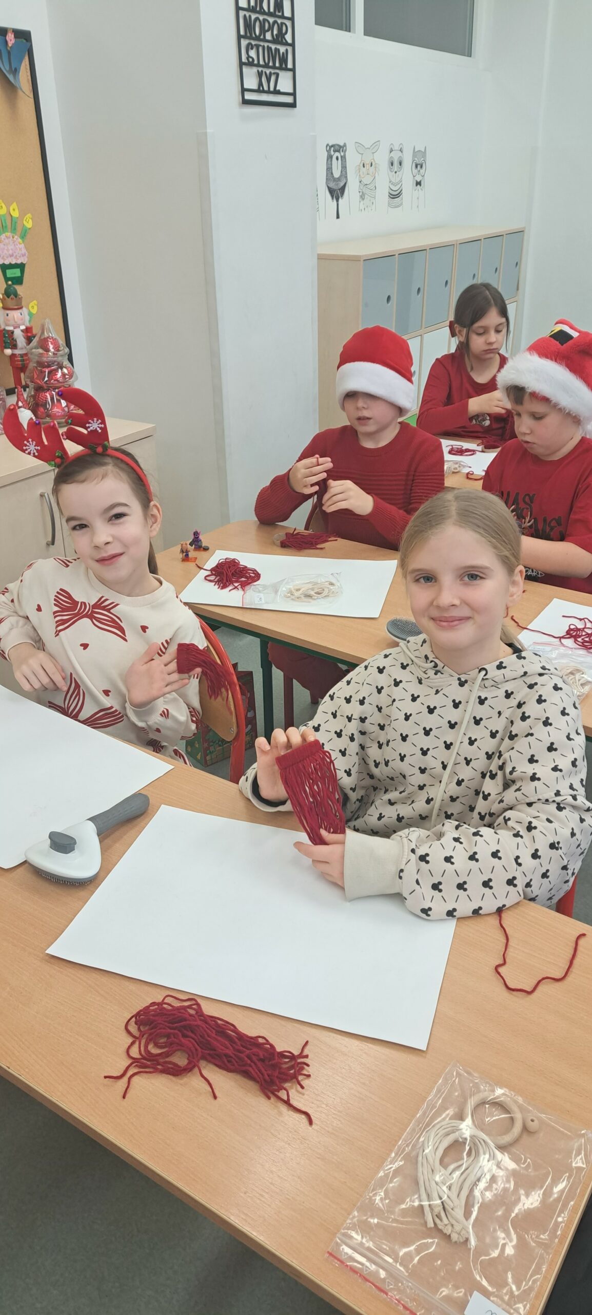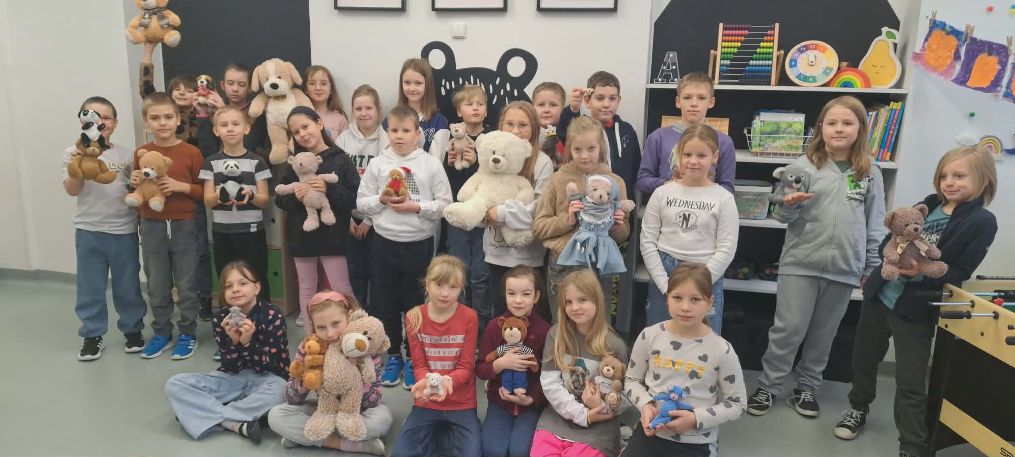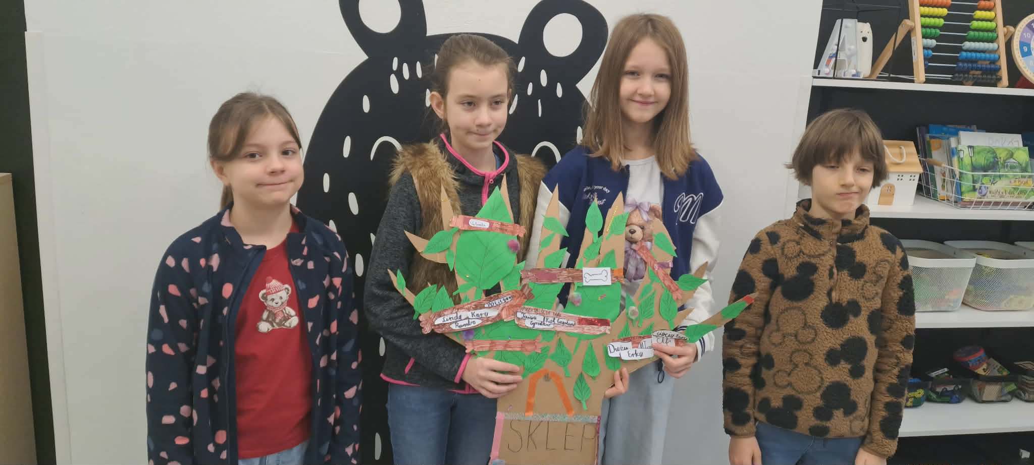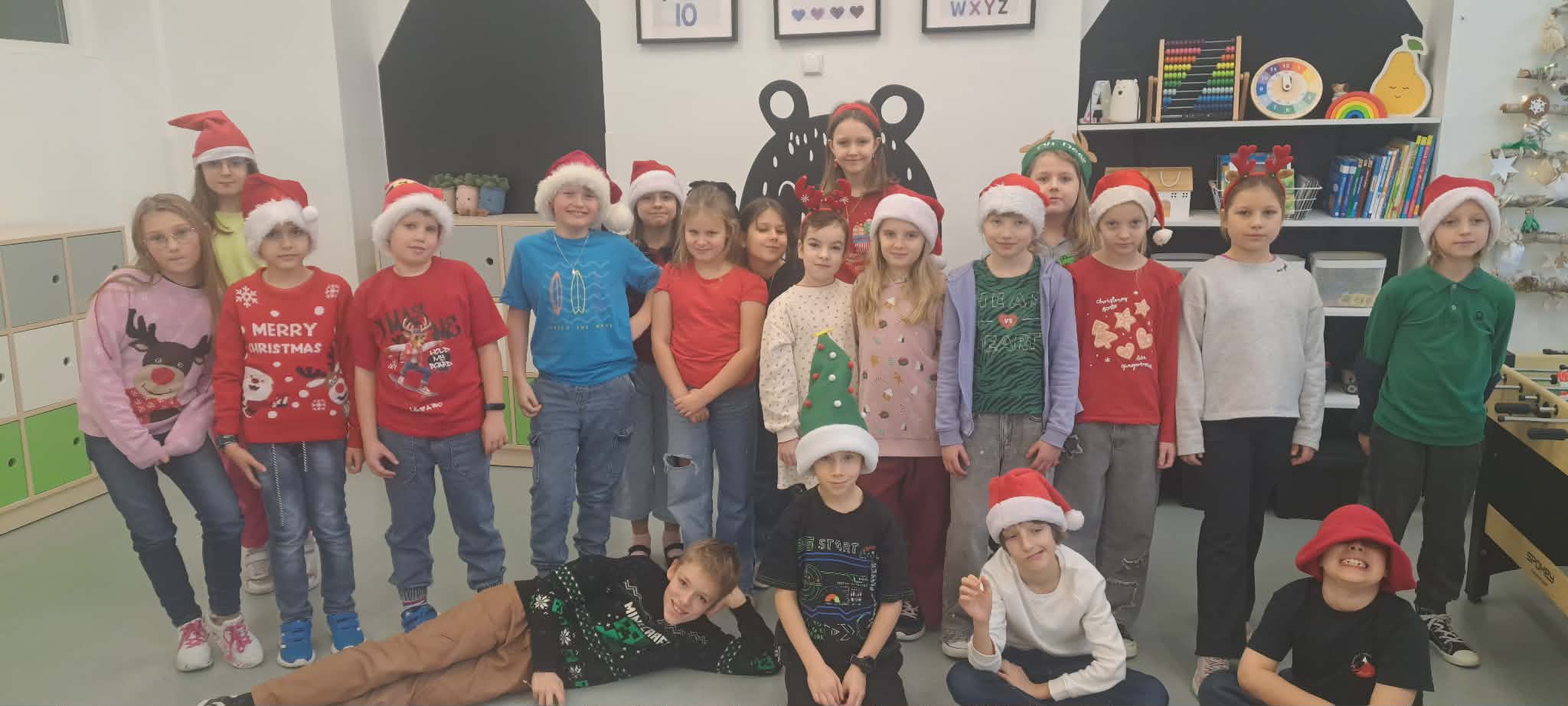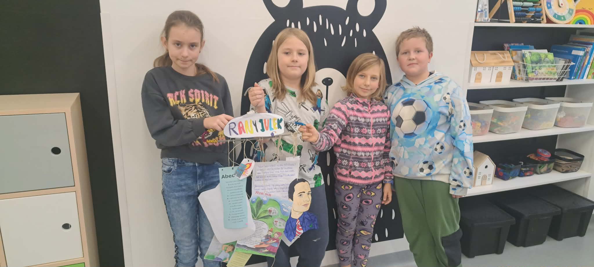 Szczególnie radosnym dniem w listopadzie był Dzień Misia. Przynieśliśmy do szkoły swoje ulubione pluszowe misie, które towarzyszyły nam podczas zajęć. Rozmawialiśmy o historii pluszowego misia, czytaliśmy opowiadania oraz uczestniczyliśmy w zabawach integracyjnych. Dodatkowo wcieliliśmy się w detektywów i tworzyliśmy „listy gończe – Poszukiwany jest miś”. Każdy opisywał wygląd swojego misia, jego cechy charakterystyczne oraz nadawał mu imię. Zadanie to rozwijało wyobraźnię, umiejętność opisu oraz sprawiło nam wiele radości. Listopad zakończyliśmy wspólnymi andrzejkami. Braliśmy udział w tradycyjnych wróżbach, zabawach i tańcach. Nie zabrakło śmiechu, dobrej zabawy oraz magicznej atmosfery. Andrzejki były doskonałą okazją do integracji klasy i wspólnego spędzenia czasu. Podczas omawiania lektury „Rany Julek! O tym, jak Julian Tuwim został poetą” elementy związane z treścią utworu – informacje o bohaterach, najważniejsze wydarzenia oraz ilustracje, przekazaliśmy w formie lektury na wieszaku. W ciekawy i kreatywny sposób urwaliśmy wiadomości oraz w grupach zaprezentowaliśmy swoją wiedzę o lekturze. Kolejną omawianą lekturą był „Sposób na Elfa”. Wzięliśmy udział w kreatywnym zadaniu, polegającym na stworzeniu „kiełbasianego drzewka lekturowego”. Na jego elementach umieszczali informacje o bohaterach, wydarzeniach oraz najważniejszych motywach z książki. Taka forma pracy pobudziła wyobraźnię uczniów i sprawiła, że omawianie lektury było nie tylko pouczające, ale także bardzo atrakcyjne.