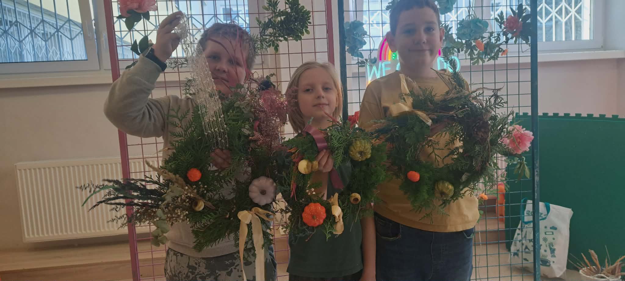 Na początku miesiąca uczniowie uczestniczyli w warsztatach jesiennych, podczas których wykonywali jesienne wianki z naturalnych materiałów. Dzieci z dużym zaangażowaniem dobierały kolory, liście i dodatki, rozwijając swoją kreatywność oraz zdolności manualne. Powstałe prace były niezwykle pomysłowe i wprowadziły do naszych domów ciepły, jesienny nastrój.